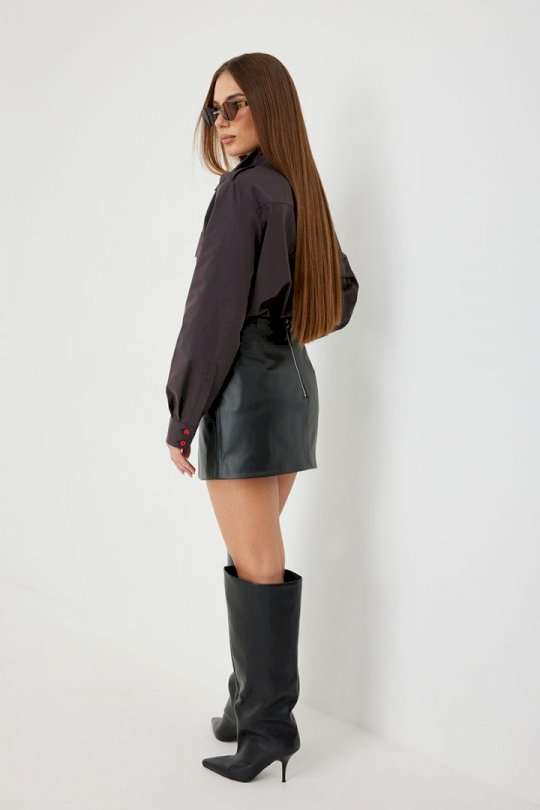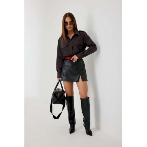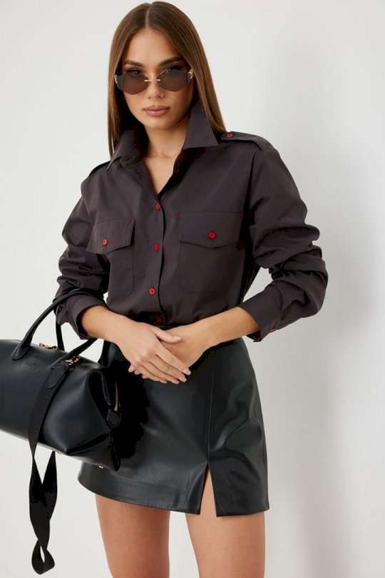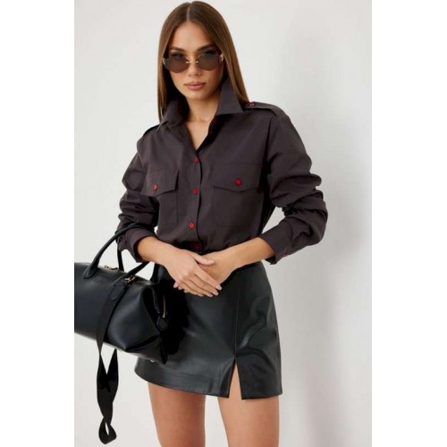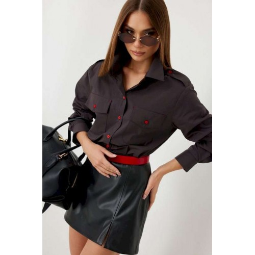 Блузка женская свободного силуэта, из рубашечной ткани в полоску. Спинка с кокеткой. Застежка на петли и пуговицы, по переду накладные карманы с клапанами, по плечевым швам погоны, фиксирующиеся пуговицей, рукав свободный, по низу манжета с пуговицами. Воротник рубашечный со стойкой. Длина рукава с манжетой 62 см. 44 р-р: ОГ - 106 см., ОТ - 106 см., ОБ - 108 см. 46 р-р: ОГ - 110 см., ОТ - 110 см., ОБ - 112 см. 48 р-р: ОГ - 114 см., ОТ - 114 см., ОБ - 116 см. 50 р-р: ОГ - 118 см., ОТ - 118 см., ОБ - 118 см. 52 р-р: ОГ - 122 см., ОТ - 122 см., ОБ - 122 см.