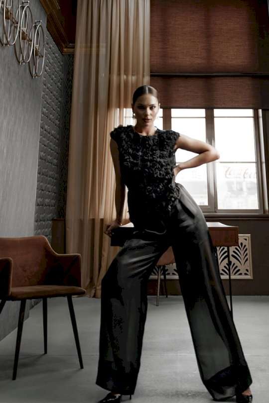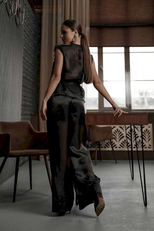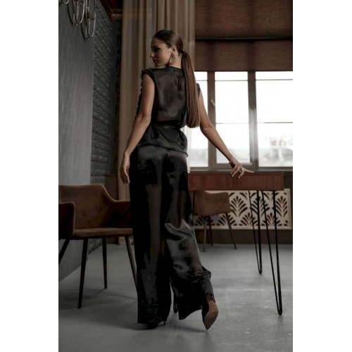 Блузка прямого силуэта со спущенным плечом. Перед из фактурной ткани «розы на сетке», спинка из полупрозрачной ткани «органза». Горловина округлой формы, по спинке застежка на навесную петлю и пуговицу. Перед на атласной подкладке. 44 р-р: ОГ - 100 см., ОТ - 96 см., ОБ - 106 см. 46 р-р: ОГ - 104 см., ОТ - 100 см., ОБ - 110 см. 48 р-р: ОГ - 108 см., ОТ - 104 см., ОБ - 114 см. 50 р-р: ОГ - 112 см., ОТ - 108 см., ОБ - 118 см. 52 р-р: ОГ - 116 см., ОТ - 112 см., ОБ - 122 см.