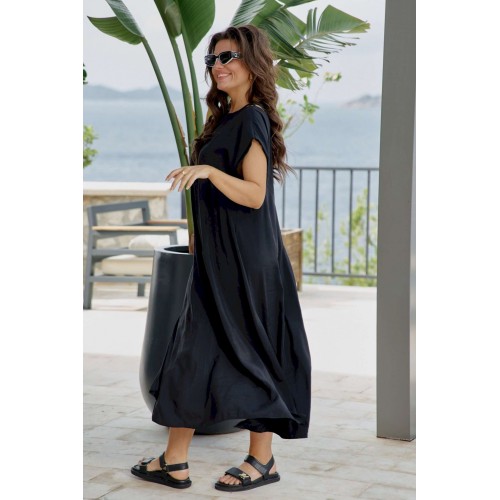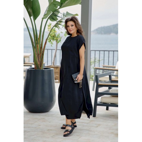 Платье женское летнее для повседневной носки и торжественных случаев из ткани «купра» без подкладки полуприлегающего силуэта по геометрическому подобию напоминает трапецию, расширяющуюся к низу. Пластическая форма мягкая, плавная. По переду платья вытачивая силуэт ниспадают конструктивно-декоративные рельефы выгодно вытягивая фигуру по вертикали. Вырез горловины полукруглый, из плечевых швов выполнены кокетливые неглубокие вырезы, зрительно притягивающие внимание к дизайну. Плечевой пояс наклонный, с цельнокроенным спущенным рукавом. По нижнему краю рукава отложной тонкий притачной манжет. По спинке так же расположены конструктивно-декоративные рельефы и вырезы, выходящие из плечевых швов. В среднем шве короткая металлическая молния у горловины. Это стильное женское платье идеально на каждый день, оно впишется в ваш гардероб как самодостаточное, так же легко стилизуется с жакетом или кардиганом. Платье с идеальной посадкой само создает образ, так как продумано до мельчайших деталей, приятное к телу. Это универсальное платье для любого гардероба. Длина платья 131 см (р 50-54), 131,5 см (р 56-60). Длина рукава 26 см (р 50-54), 27 см (р 56-60).