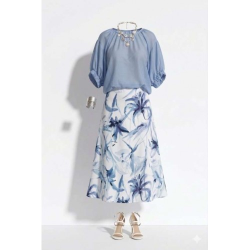 Юбка для повседневной носки и торжественных случаев в романтичном стиле в летний период небольшого объема. По геометрическому подобию напоминает трапецию, пластическая форма мягкая, плавная. Создана из мягкого шелковистого атласа с принтом в тончайшей акварельной технике. По силуэту юбка трапецевидная, расширена к низу от линии бедер. Пояс отрезной по центральной части спинки в нем резинка. Застежка на потайную тесьму-молнию в боковом шве. Юбка без подкладки. Эта модель для вашего гардероба, ведь она подходит для повседневных образов, легко сочетается с другими предметами гардероба, идеально сидит на фигуре благодаря продуманному крою и великолепному исполнению задает современный вид. Юбка подчеркивает фигуру, а благодаря принту выгодно выделяет, делает вас заметнее и ярче. Выполнена из современных и качественных материалов в тренде сезона с акцентом на фигуру. Универсальная вещь на каждый день и идеальный вариант для капсульного гардероба так же прекрасно будет выглядеть на торжестве, создавая женственный и элегантный образ. Крой придает модели современный вид и молодит обладателя. Длина юбки 88 см.