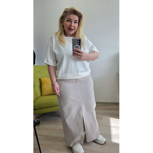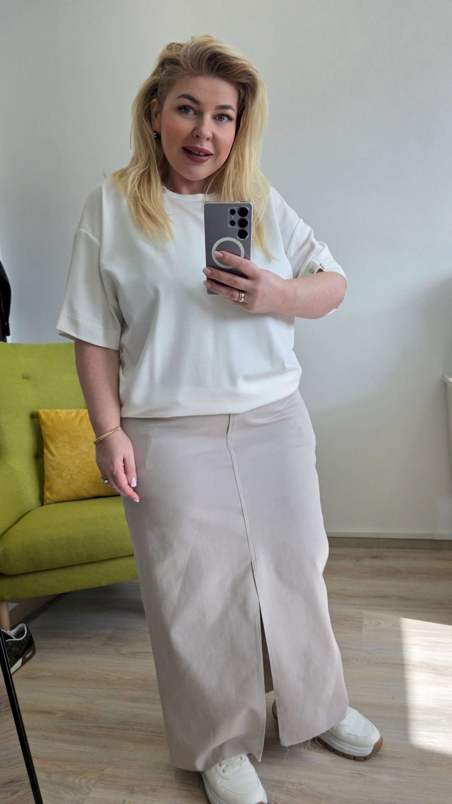 Юбка силуэта длины «миди» с разрезом. Пояс притачной с эластичной тесьмой в бочках, что обеспечивает максимально комфортную посадку на любой тип фигуры. Застёжка на тесьму молнию в гульфике и пуговицу по центру переда юбки. По переду юбки функциональные карманы. По заднему полотнищу юбки средний шов и накладные карманы. Низ юбки с эффектом необработанных срезов. В качестве дополнительного декоративного элемента в комплекте идёт пояс. Обращаем Ваше внимание, что фурнитура может незначительно отличаться от фото. Длина юбки по среднему срезу заднего полотнища без пояса 92 см (р 50-54), 92,5 см (р 56-60).