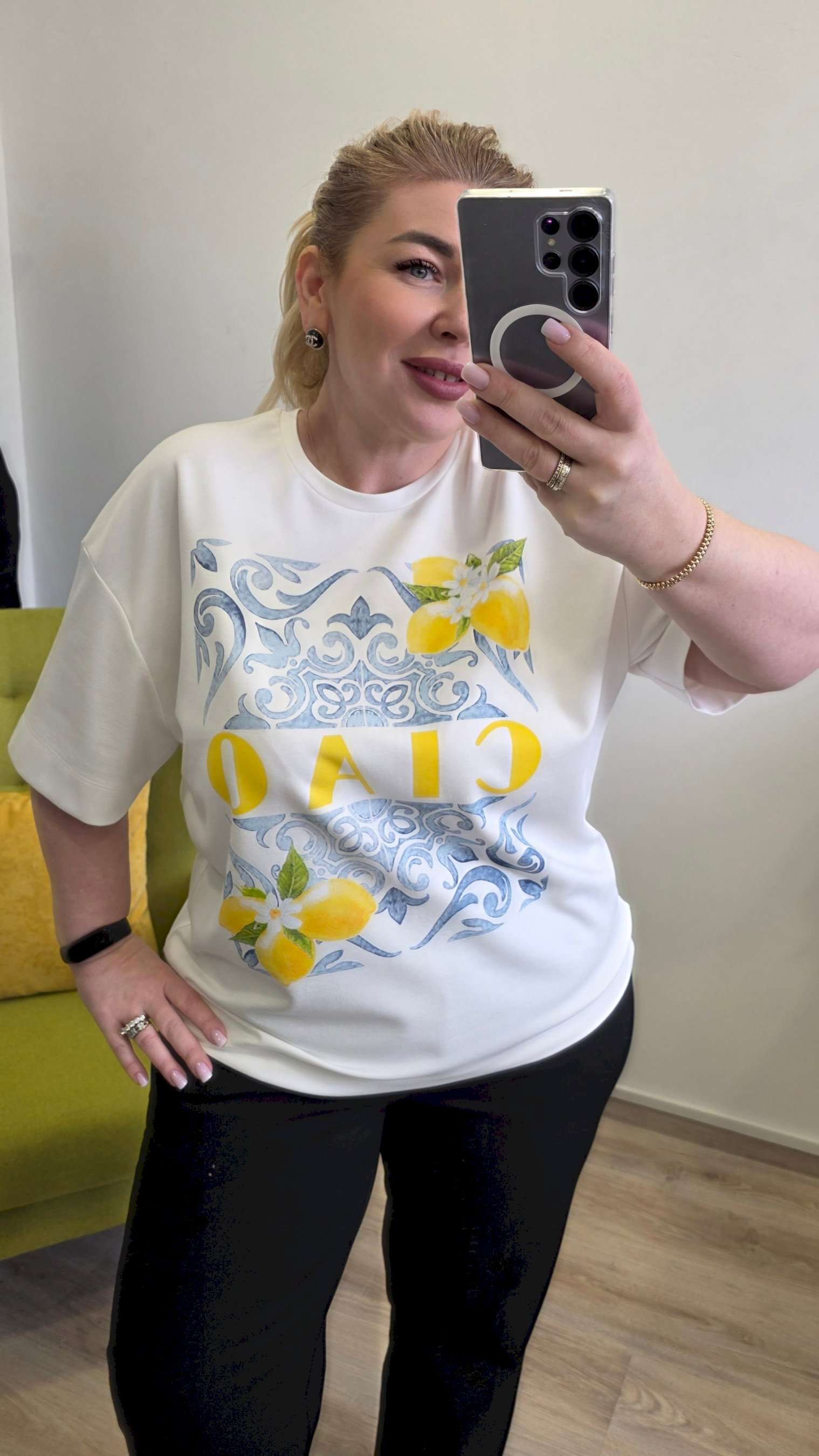 Блуза женская, свободного силуэта— это философия современной городской жизни, где: свобода оверсайз кроя сочетается с классической структурой. Яркость «итальянского» принта балансирует нейтральностью основы ткани. Творческая экспрессия встречается с практичностью повседневности. Он для женщины, которая: не боится быть заметной, но ценит комфорт. Она для женщины, которая: не боится быть заметной, но ценит комфорт, путешествует по городу как по собственному музею. Блуза «оверсайз» силуэта, удлинённая, с округлой формой горловины. Линия плеча спущённая, рукав втачной с широкой подгибкой по низу. Спинка без особенностей. В качестве отделочного декоративного элемента по переду блузы располагается дизайнерский принт. Длина блузы 62 см (р 52-56), 63 см (р 58-62), длина рукава 21 см.