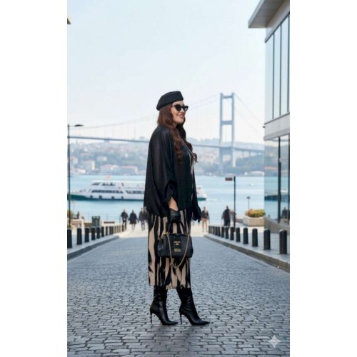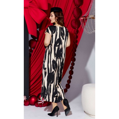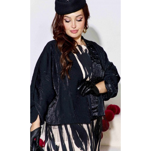 Предлагаем вашему вниманию изысканный плательный комплект состоящий из укороченного жакета и платье прямого силуэта. Сочетание разных фактур - крэш с отливом в жакете и шелковистое вискозное платье создают благородный ансамбль. Жакет прямой свободного силуэта с цельнокроеным рукавом, перед без застежки с широкой линии борта и не высокой цельнокроенной стойкой. Низ переда обработан декоративной тесьмой - бахрома. По рукаву декоративная складка низ рукава фигурной формы. Спинка по среднему шву со встречной складкой. Жакет выполнен на подкладке. Платье прямого силуэта со спущенным плечом и со шлицей сбоку. Горловина платья округлой формы по переду треугольный подрез на уровне груди. Платье выполнено на подкладке. Жакет длина по спинке 56 см (р 50-54), 57 см (р 56-60). Длина рукава жакета 61 см ( р 50-54), 62 см (р 56-60). Длина платья 125 см, длина рукава(плечо) 19 см (р 50-54), 40 см (р 56-60).
