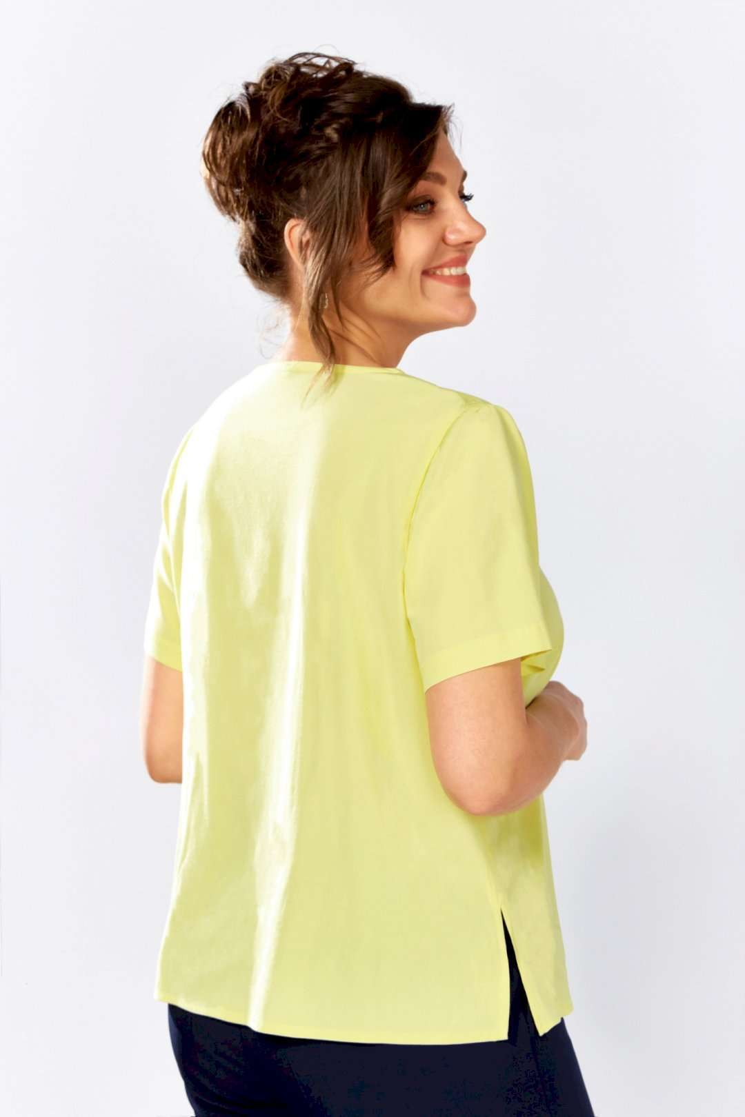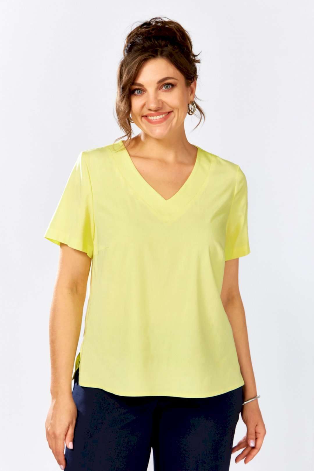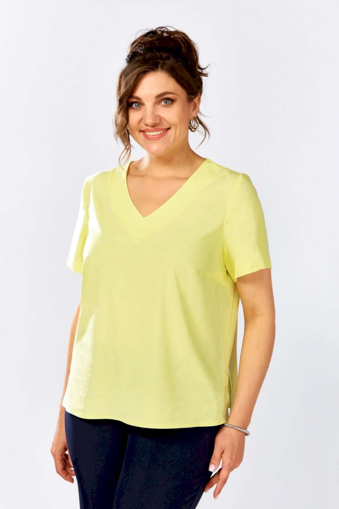 Блузка женская, свободного кроя с коротким рукавом и V-образной горловиной добавит образу изысканности и обеспечит комфорт в течение всего дня.