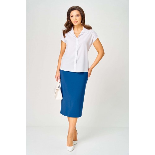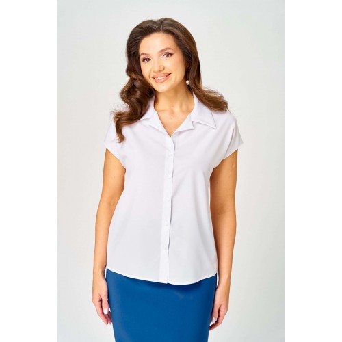 Комфортная и лёгкая блузка выполнена из струящейся, тонкой ткани. Блузка свободного прямого силуэта со спущенной линией плеча. Воротник отложной.Застежка центральная на петли и пуговицы.