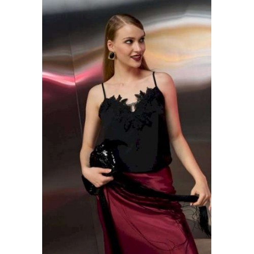 Топ прямого, выполнен из блузочной ткани. По переду надстрочное кружево. Блуза на регулируемых бретелях. Длина по спинке: 65 см ОГ: 90-94-98-102-106-110 см (размер 42-44-46-48-50-52)