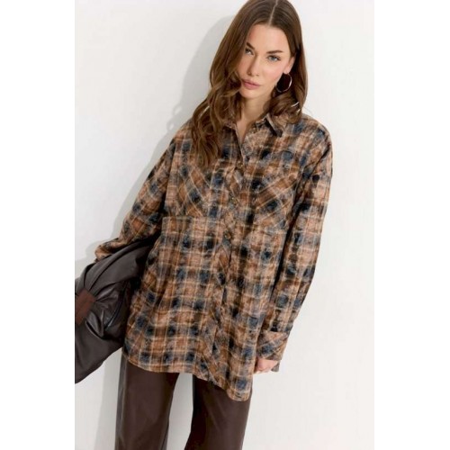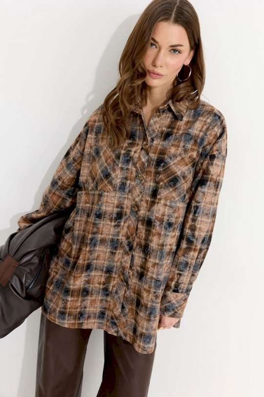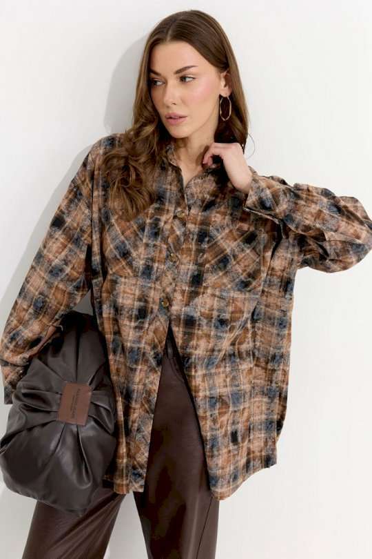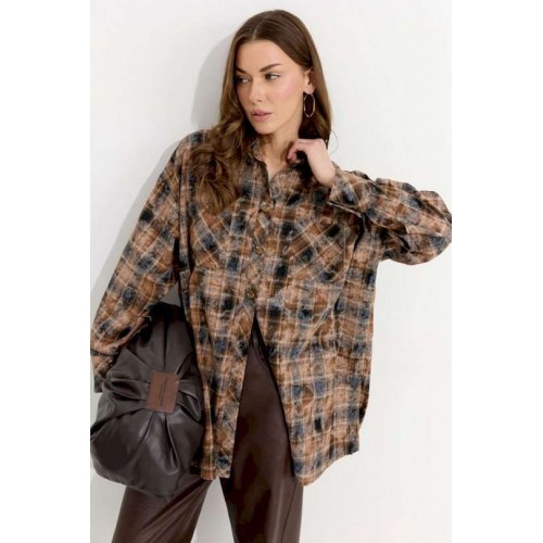 Блузка прямого силуэта из плательно-костюмной ткани с фигурным низом. Воротник стояче-отложной с отрезной стойкой, по центру застежка на петли и пуговицы. Рукав со спущенной линией плеча, по низу манжета с застежкой на петли и пуговицы. По переду накладные карманы. На спинке кокетка со складками. Обращаем ваше внимание, что фурнитура может отличаться от фото. Подходит на рост 164-170 см. Длина блузки (44-48р – 79см)(50-54р - 79см)(54-60р - 81см). Длина рукава от горловины(44-48р - 76см)(50-54р - 76,5см)(54-60р - 77см).