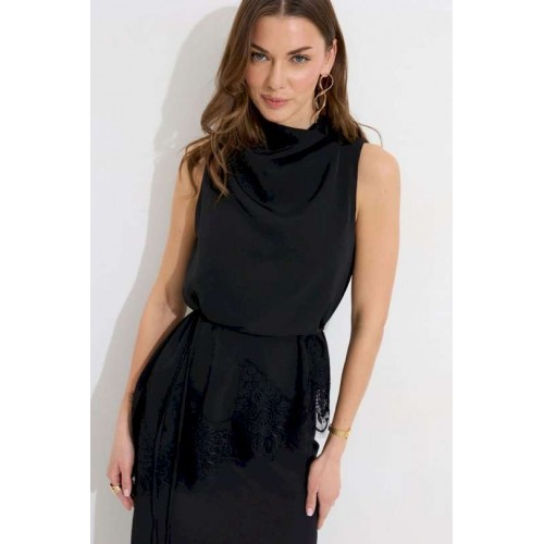 Ассиметричная блузка полуприлегающего силуэта из струящейся ткани. Горловина цельнокроеная. По низу декоративная тесьма( кружево). По низу в боковом шве разрез. Пояс-шнурок из основной ткани идет в комплект. Подходит на рост 164-170 см. Длина блузки по центру спинки (44-48р 72 см) (50-54р 74см). Разница длины боковых швов составляет 25см.