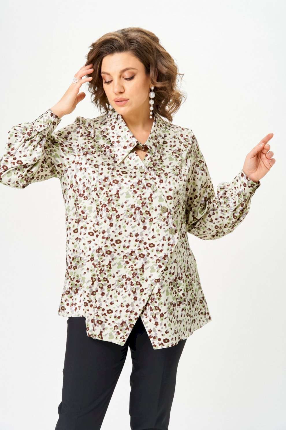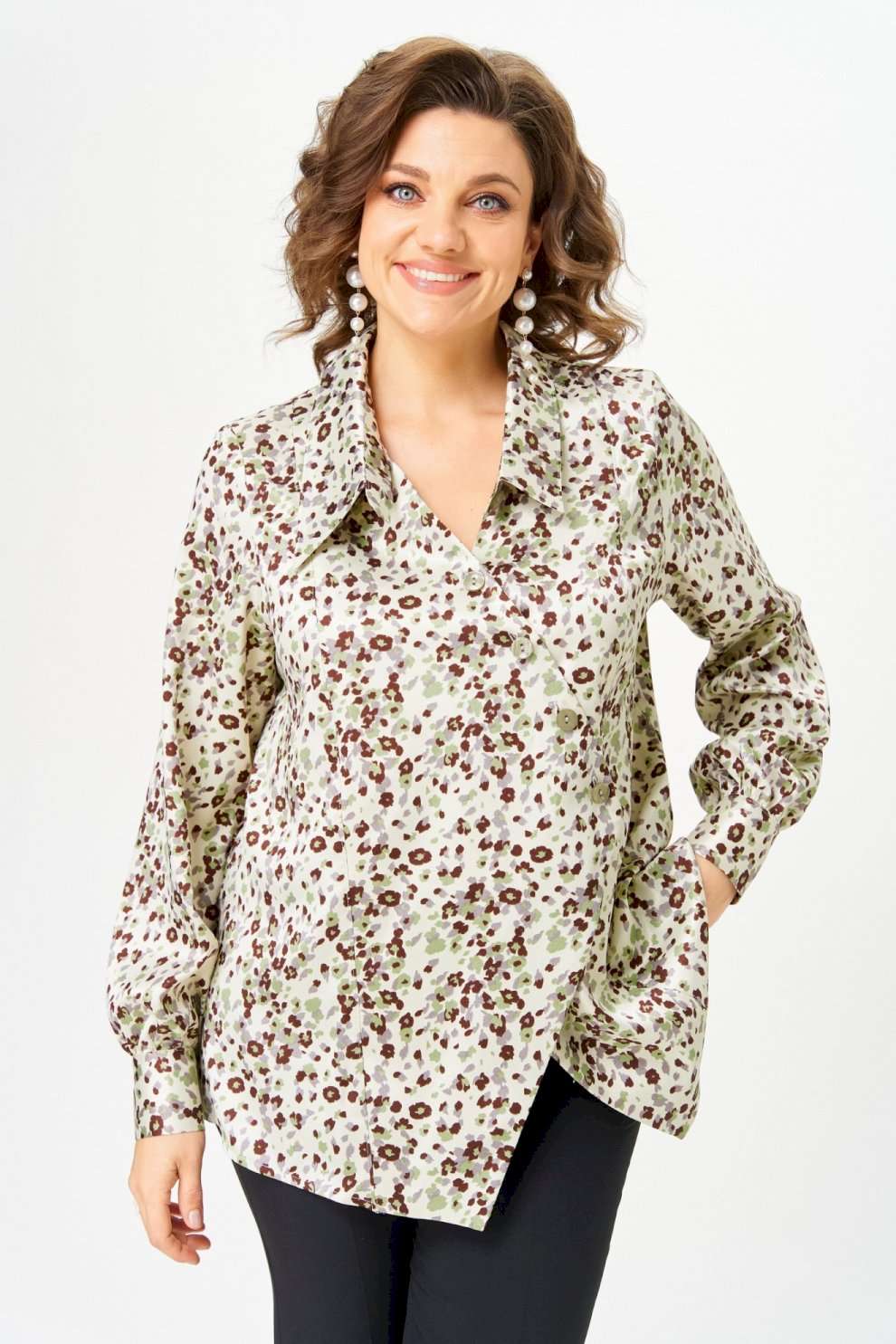 Премиальная блузка с асимметрией · Limited Edition Эта блузка — про тонкий баланс элегантности и свободы. Да, состав искусственный — и это премиальный сатин: с мягким благородным блеском, приятный к телу, без ощущения «синтетики». Ключевой акцент — асимметрия. Нестандартный воротник перекликается с асимметричными полочками, создавая эффект продуманного дизайнерского кроя. Деталь, которая сразу выделяет образ и делает его современным и живым. Свободная посадка обеспечивает комфорт в течение дня, ткань красиво движется вместе с телом, а модель легко адаптируется под разные стили — от делового до вечернего. Блузка не старается выглядеть модной — она уже актуальна. ◾Премиальный искусственный сатин с лёгким блеском ◾Асимметричный воротник — выразительный акцент ◾Комфортная свободная посадка ◾Универсальность: офис, встречи, выходы ◾Лёгко сочетается с брюками, юбками, денимом Premium · Limited Модель выпущена ограниченным тиражом — без повторов и массового производства. Для женщин, которые выбирают вещи с характером и подчёркивают своё состояние, а не возраст. Длина блузы по спинке 71 см +\\- 1 см, длина рукава 66 см +\\- 1 см. Изделие подойдет на рост 170 см.