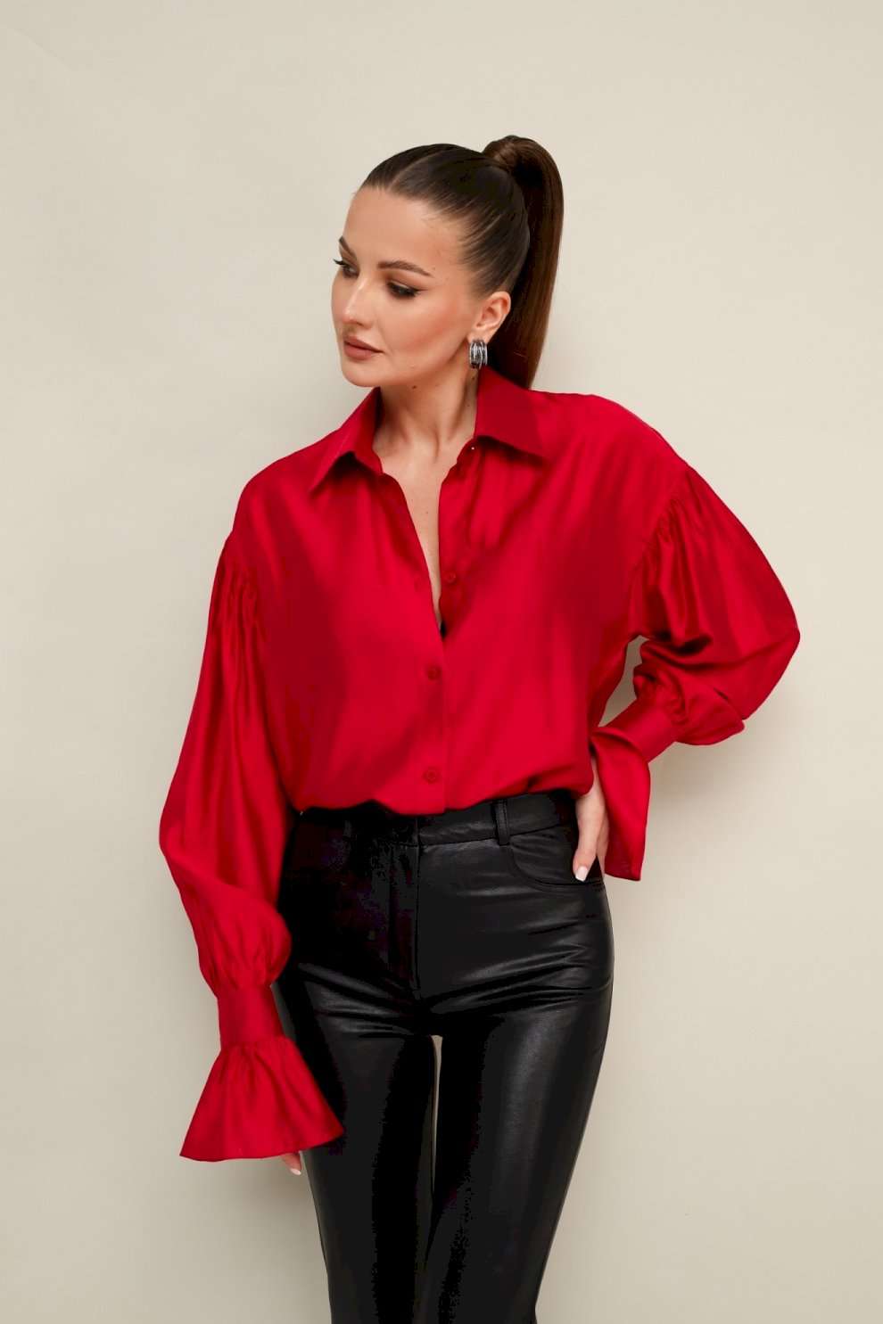 Блузка 11-460 Pur Pur привлекает внимание своим уникальным дизайном. Коллекция бренда Pur Pur предлагает блузку прямого кроя из натуральной вискозы с матовым блеском, что обеспечивает легкость и комфорт. Стильный рубашечный воротник на отрезной стойке и застежка на пуговицы подчеркивают ее утонченность. Рукава со спущенной линией плеча и манжеты с рюшей добавляют изысканности этому нарядному изделию. Яркий красный цвет делает блузку идеальным решением как для повседневного, так и для вечернего выхода. Это отличный выбор для весны и осени.