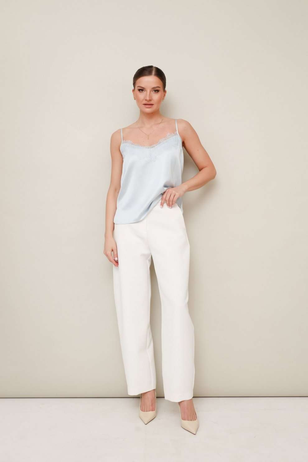 Топ 11-490 Pur Pur – изысканный элемент вашей одежды, выполненный в бельевом стиле. Коллекция бренда Pur Pur сочетает в себе утонченность и комфорт. Изготовленный из качественного полиэстера, он обеспечивает мягкость и легкость. Приталенный фасон с тонкими бретелями и регулируемым V-образным вырезом подчёркивает достоинства фигуры. Особое внимание привлекает французское кружево, декорирующее верхний край переда и спинки. Летний сезон – идеальное время для демонстрации стильного топа в повседневных и вечерних образах. Голубой цвет добавляет нотки свежести и исключительности вашему гардеробу.