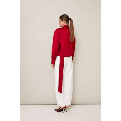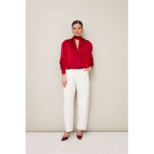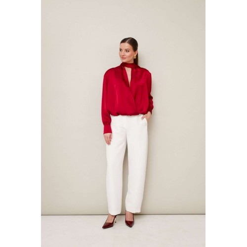 Блузка 11-491 Pur Pur — это яркий элемент женского гардероба. Коллекция бренда Pur Pur выполнена из качественного полиэстера, который обеспечивает комфорт и долговечность изделия. Блузка прямого кроя с V-образным вырезом на запах и спущенной линией плеча подчеркивает женственность и стиль. Манжеты снабжены застежкой на петлю и пуговицу, что добавляет изысканности. Съемный шарф — это практичный аксессуар, который можно использовать для создания разнообразных образов. Блузка обработана резинкой по низу, что позволяет регулировать посадку. Яркий красный цвет акцентирует внимание, делая блузку подходящей для любых особых случаев и повседневных выходов в демисезон. Эта вещь станет идеальным выбором для тех, кто ценит стиль и комфорт.