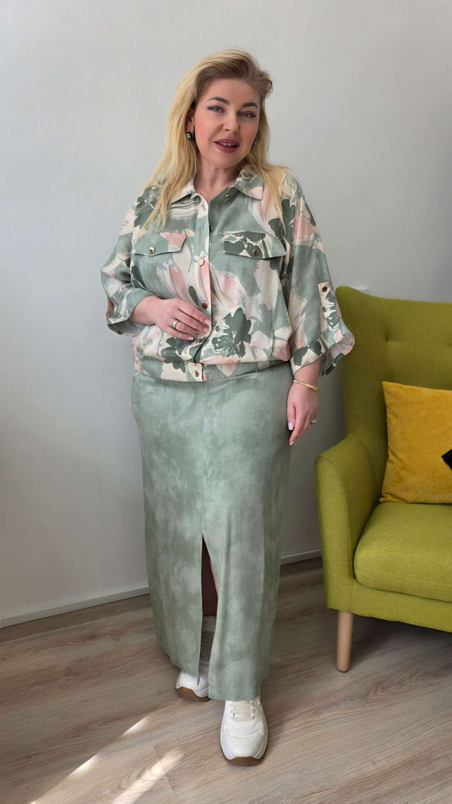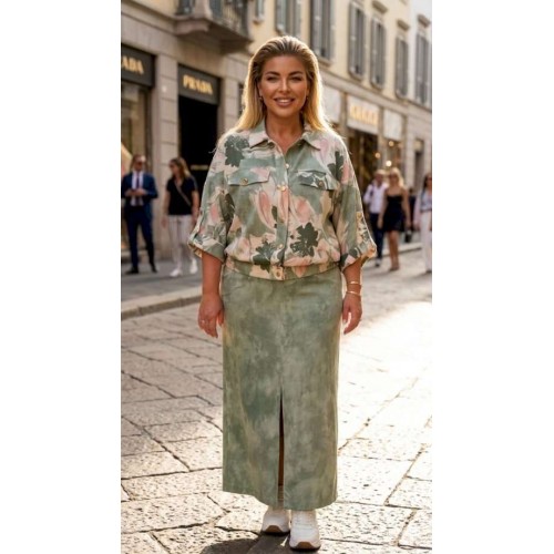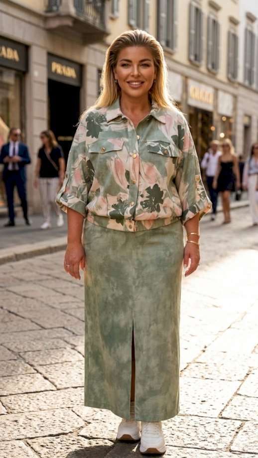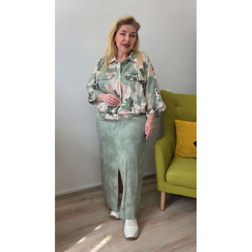 Этот блузон — воплощение современной элегантности и абсолютного комфорта, созданное для тех, кто ценит тактильную роскошь. Выполненный из стопроцентного тенсела, он обладает уникальной текстурой: шелковистой, едва прохладной на ощупь и благородно матовой. Ткань струится, мягко очерчивая силуэт и создавая живую игру света при каждом движении. Легкость материала делает этот блузон идеальным спутником для летних вечеров, когда хочется окутать плечи чем-то невесомым. Блузон в этом ансамбле — не просто куртка, это заявление, его облегчённая ткань делает его невесомым, почти эфемерным. Блузон свободного силуэта со вставкой эластичной тесьмы-резинки для мягкого прилегания. Блузон с центральной застёжкой на петли-пуговицы по планке, воротником рубашечного типа. Рукав в блузоне цельнокроеный с отложной манжетой и декоративной патой фиксирующейся отделочной пуговицей. По переду горизонтальные подрезы, декоративные клапана с отделкой в виде пуговицы. По переду блузона прорезные карманы в горизонтальных рельефах. Спинка в блузоне с отрезной кокеткой и вертикальными рельефами. Варианты стилизации: для создания образа в стиле «тихая роскошь» сочетайте блузон с широкими брюками-палаццо из такого же материала или тонкого льна в монохромной гамме. Добавьте шелковый топ в бельевом стиле и лаконичные кожаные сандалии на плоском ходу. Этот ансамбль идеально подойдет для прогулки по набережной или бранча на открытой террасе. В повседневном городском ритме блузон станет отличным дополнением к джинсам прямого кроя с высокой посадкой и базовой белой футболке. Чтобы добавить образу динамики, выберите кеды из светлой парусины и небольшую сумку-кроссбоди. Контраст между грубым денимом и нежным тенселом подчеркнет современность вашего вкуса. Длина блузона 61 см (р 52-56), 62 см (р 58-62). Длина рукава 52 см (р 52-56), 53 см (р 58-62).