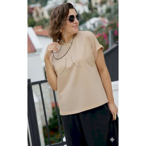 Блуза из трикотажа, немного расширена к низу, с цельнокроеными рукавами и отворотами. Спереди выполнена аппликация из страз разного размера. Блуза подойдет для прогулок, посиделок с друзьями, похода в кафе и отдыха. Модель свободного кроя органично впишется в гардероб, всегда будет элегантной и уместной, эта модель «вне времени» и будет актуальна в следующих сезонах. Блуза комфортна в носке на каждый день, создает женственный, игривый и элегантный образ. Мы используем материалы высокого качества, делаем акцент на фигуру и современный крой, что позволяет нашим изделиям не терять актуальности, а для вас служить выгодным приобретением. Длина блузы 62 см, длина рукава 26,5 см (р 52-56), 29,5 см (р 58-62).