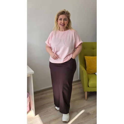 Блуза из трикотажа, немного расширена к низу, с цельнокроеными рукавами и отворотами. Спереди выполнена аппликация из страз разного размера. Блуза подойдет для прогулок, посиделок с друзьями, похода в кафе и отдыха. Модель свободного кроя органично впишется в гардероб, всегда будет элегантной и уместной, эта модель «вне времени» и будет актуальна в следующих сезонах. Блуза комфортна в носке на каждый день, создает женственный, игривый и элегантный образ. Мы используем материалы высокого качества, делаем акцент на фигуру и современный крой, что позволяет нашим изделиям не терять актуальности, а для вас служить выгодным приобретением. Длина блузы 62 см, длина рукава 26,5 см (р 52-56), 29,5 см (р 58-62).