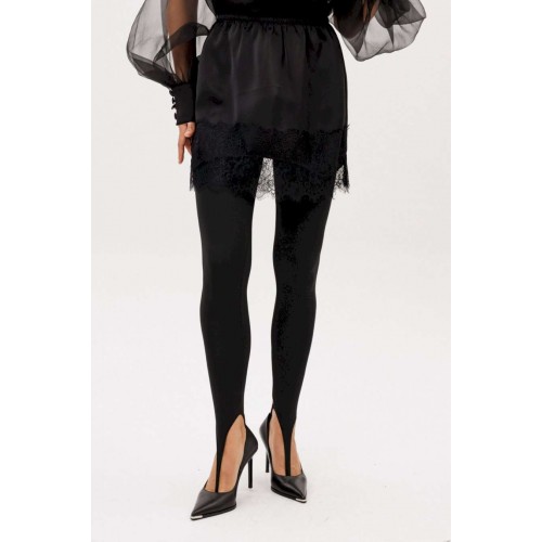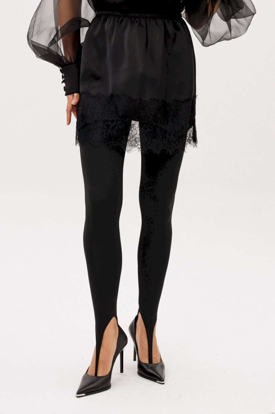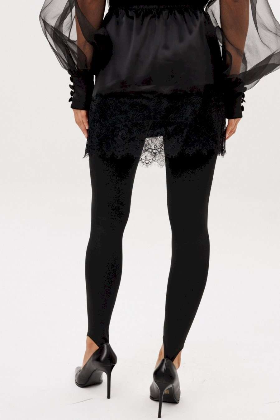Леггинсы выполнены из эластичного трикотажного полотна. Леггинсы с высокой посадкой, со штрипкой через палец. Подойдут на р.42-44-46. Длина леггинс сбоку с поясом - 94 см. Длина по шаговому шву - 66 см.