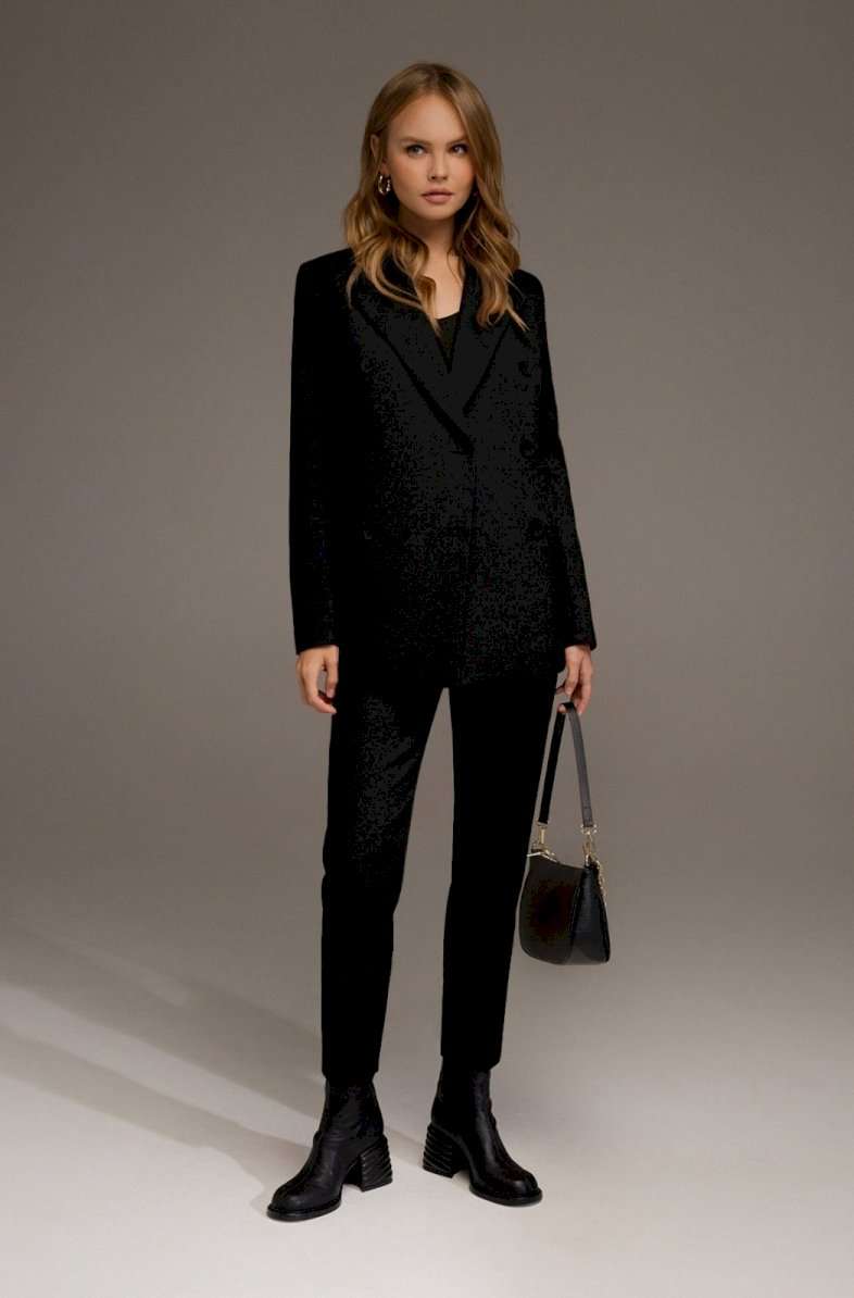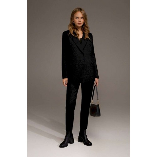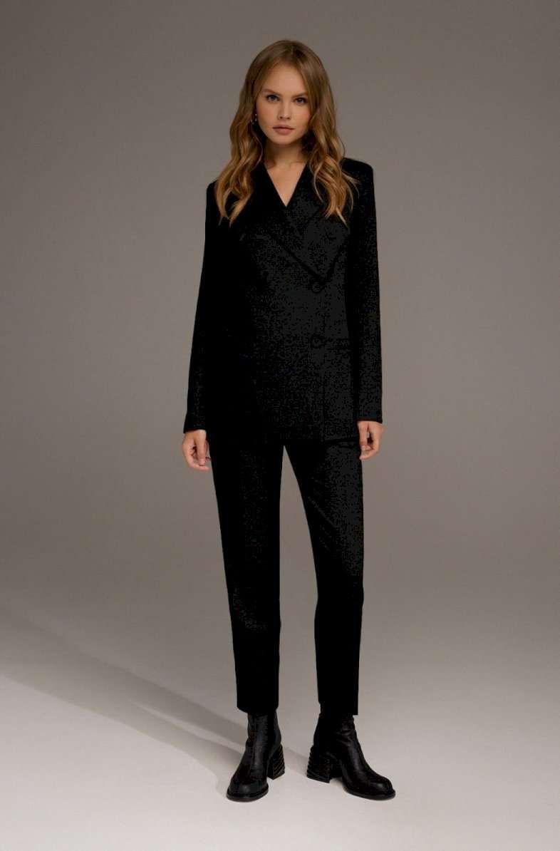 Классические укороченные брюки из текстильной ткани. Детали: брюки со средней посадкой, притачной пояс со шлевками, передние половины с небольшими мягкими складками и заутюженными стрелками, застежка на молнию и пуговицу, боковые карманы. Подходит на рост 158-174 см. Длина брюк по боковому шву с поясом около 94 в размерах 40-46 и около 95,5 см в размерах 48-52. Длина по внутреннему шву около 67 см.