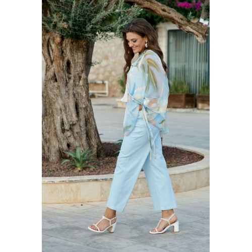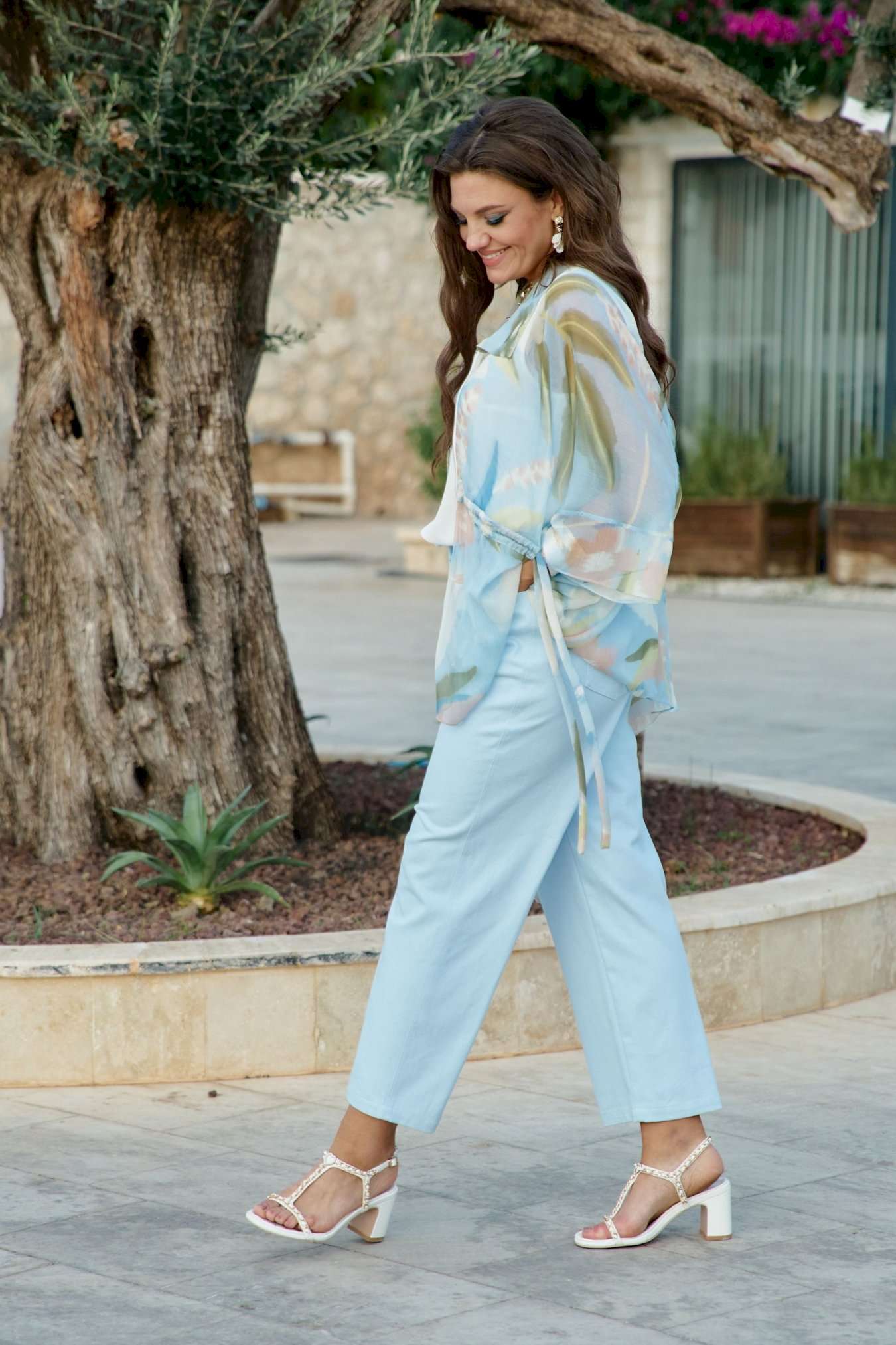 Брюки - джинсы классического силуэта являются отличной базой в гардеробе каждой модницы. Светлый деним придаёт образу лёгкости и уверенности. Классический крой делает силуэт сбалансированным и вневременным. Брюки прямого силуэта, по переду застежка на тесьму молнию в гульфике и пуговицу в поясе. По переду брюк наклонные карманы. Пояс притачной со шлёвками, вставкой эластичной тесьмы резинки в «бочках» пояса и вставкой фигурной кокетки по задним деталям брюк. По задним половинкам брюк накладные карманы. Длина брюк по боковому шву от шва притачивания пояса 98 см.
