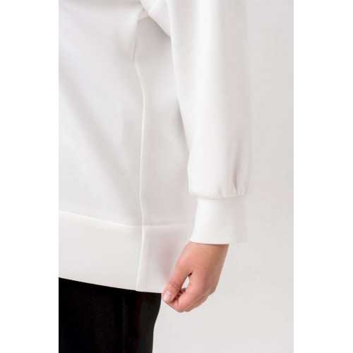 Позвольте себе насладиться комфортом и стилем с нашей туникой, которая станет вашим незаменимым спутником. Этот стильный свитшот предполагает легкость и свободу движений, что делает идеальным для повседневной носки и прогулок на свежем воздухе. Изготовленный из качественного трикотажа, он обеспечивает дышащие свойства и гипоаллергенность, что особенно важно для женщин с чувствительной кожей. Туника с круглой, асимметричной горловиной и манжетами на запястьях добавляет образу женственности и утонченности. На полочке обработана нефункциональная, декорированная пуговицами планка. На спинке, в среднем шве, обработана потайная молния.Она легко сочетается с различными аксессуарами,юбкой,брюками и разной обувью, что дает возможность создавать разнообразные образы.
