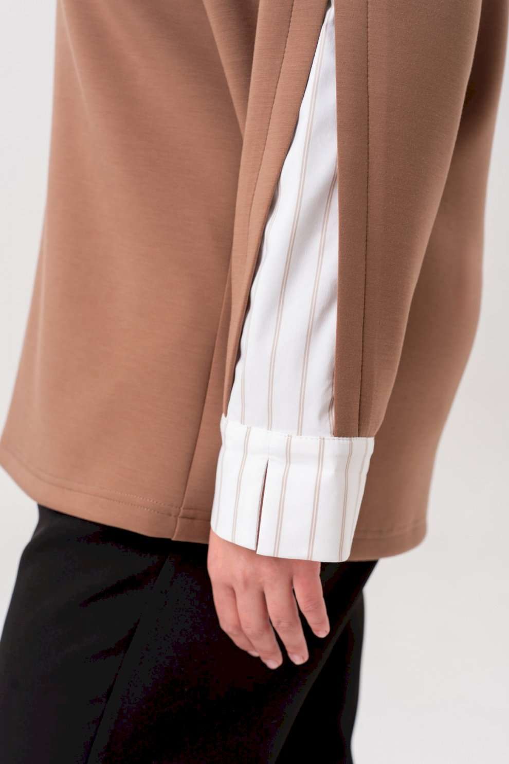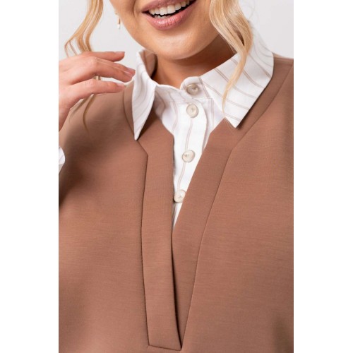 Практичный и удобный – он станет Вашей любимой туникой, а трендовый дизайн делает его актуальным решением для девушек, которые следят за модой. Свитшот женский с имитацией рубашки- новинка коллекции. Изготовленный из качественного трикотажа и полоски на х/б основе, он обеспечивает дышащие свойства и гипоаллергенность, что особенно важно для женщин с чувствительной кожей. Подходит на осень, весну и для зимы. Ткань необычайно мягкая и приятная к телу. Свободный оверсайз крой изумительно подойдет для девушек и женщин больших размеров. На свитшоте обработан воротник и застежка –планка на петли и пуговицы. Рукав комбинирован из двух тканей, с манжетой и разрезом. Модель подходит для высоких и для невысоких. Такая модель должна быть в каждом гардеробе.