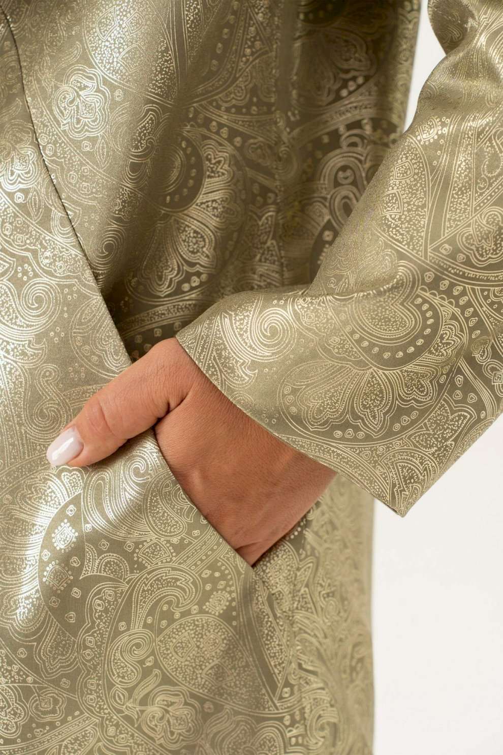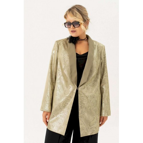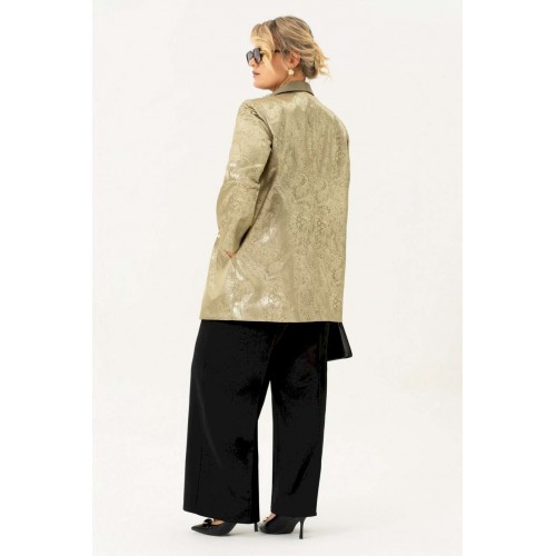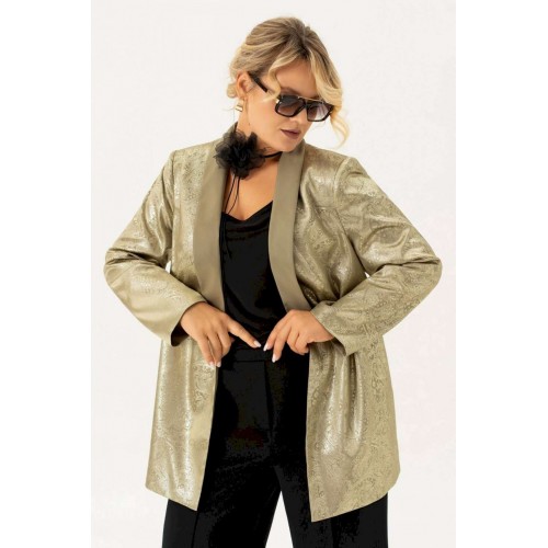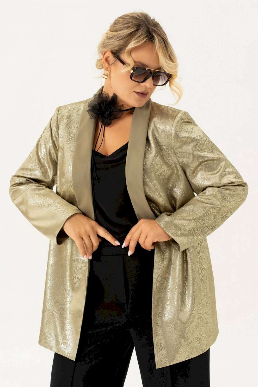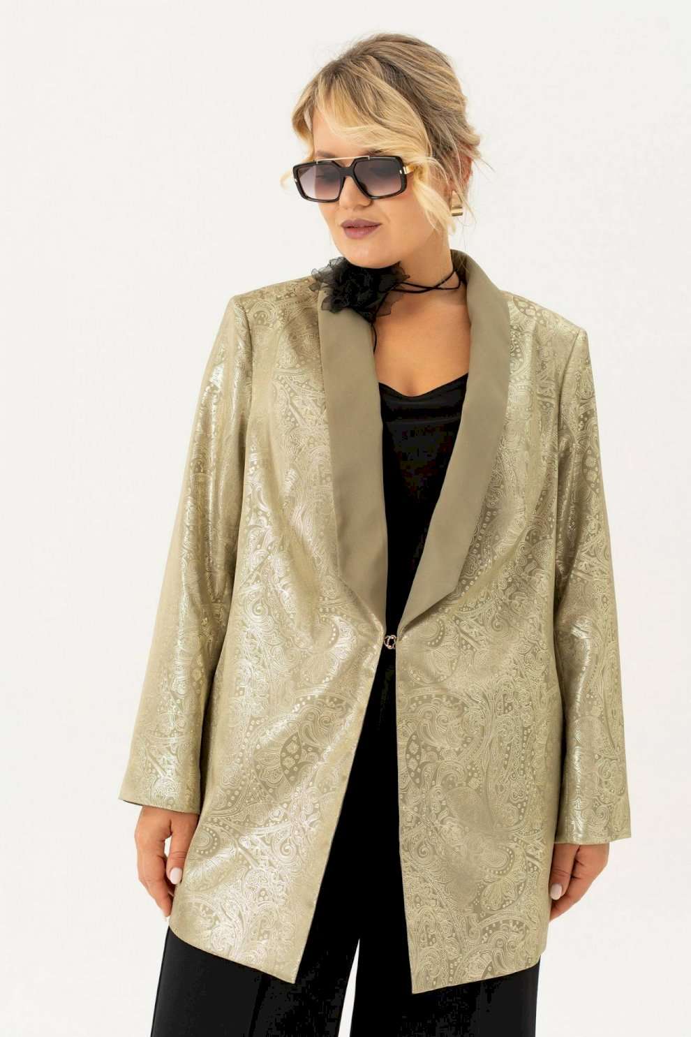 Этот женский нарядный жакет представлен в ярких тонах. Благодаря своему прямому, слегка приталенному силуэту, жакет обеспечивает максимальный комфорт и удобство при ношении. Вам не придется беспокоиться о чувстве стеснения или дискомфорта, так как он идеально подстраивается под вашу фигуру. Этот нарядный пиджак гарантированно привлечет внимание и подчеркнет вашу индивидуальность. Он доступен в больших размерах и подходит для женщин с разными типами фигуры. Вы сможете выглядеть модно и элегантно независимо от своего размера. На жакете обработан воротник шалька и карманы в фигурных рельефах. Жакет на подкладке с длинным рукавом. Застежка на декоративный крючок. Длина изделия (см):80Длина рукава (см):62