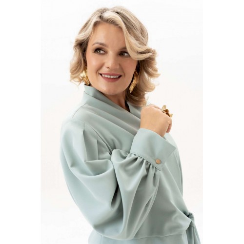 Оригинальная женственная блуза на запах с вырезом станет незаменимой вещью в Вашем гардеробе. Всесезонная блуза с длинными рукавами на манжетах легко впишется в Ваш повседневный, вечерний, а также деловой офисный стиль. Роскошная блузка сочетает в себе легкость и комфорт. Блуза с отрезной баской и воротником стойкой переходящей в борта. Застежка на потайную петлю и пуговицу и на завязки. Рукав длинный, втачной на манжете. По окату рукава обработаны складки. Вы сможете носить эту блузу не только летом, но и осенью, зимой и весной. Стильная женская блуза класса люкс соответствует модным тенденциям 2025-26 года. Ткань отлично тянется и обеспечивает идеальную посадку по фигуре. Мы уверены, что высокое качество Вас не разочарует! Широкий размерный ряд, включающий большие размеры, позволит Вам подобрать подходящий размер. Праздничная блузка скроет несовершенства фигуры, выгодно подчеркивая ваши красоту, женственность и индивидуальность. Элегантная и красивая блуза станет идеальным вариантом как для торжественных мероприятий: выпускной, корпоратив, свадьба, любой другой праздник, Новый год, так и для деловых и повседневных встреч, офиса. Нарядная модная блузка отлично подойдет для фотосессии, похода в театр и свидания. Сезоны, когда вы сможете ее носить: осень, зима, весна. Длина рукава (см):62. Длина блузы (см):67