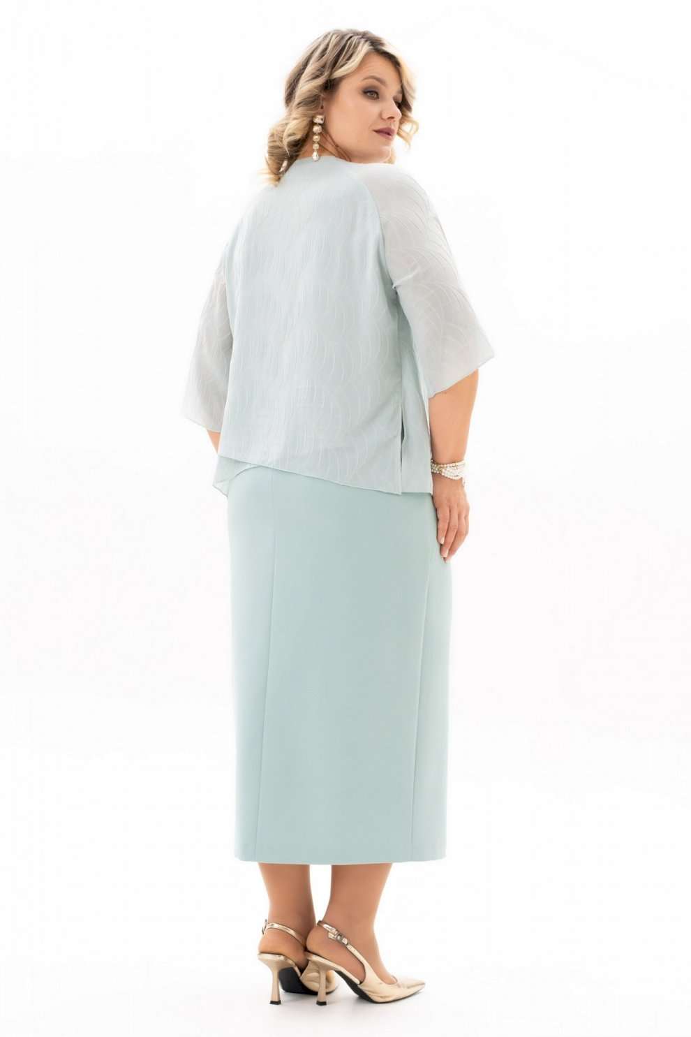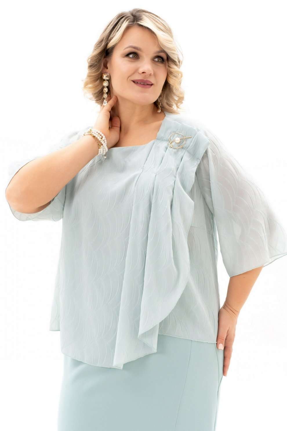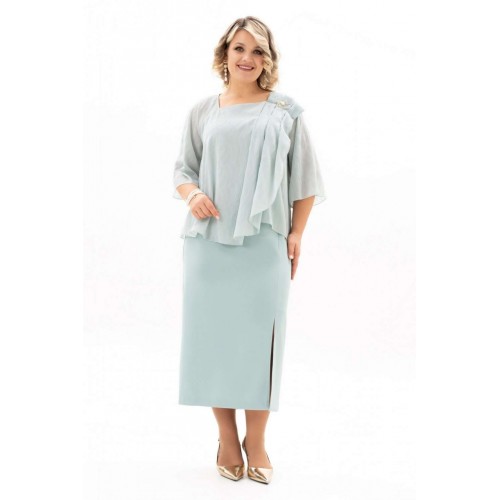 Костюм с юбкой 4125 Algranda (Новелла Шарм) мгновенно привлекает внимание своим изысканным дизайном. Коллекция бренда Новелла Шарм демонстрирует сочетание комфорта и стиля, идеального для офисной или вечерней атмосферы. Костюм выполнен из полиэстра и вискозы, что обеспечивает прочность и лёгкость ухода, а эластан добавляет эластичности. Блуза с нагрудными выточками, фигурным вырезом и декоративными элементами, такими как мягкие складки и съёмная брошь, подчёркивает женственность. Разрезы на юбке и её зауженная к низу форма добавляют динамичности образу. Длина блузы составляет 59 см, юбки — 90 см, рукава 39 см, что подходит для многих типов фигуры. Эластичная тесьма на поясе и застёжка на молнию сзади обеспечивают удобную посадку. Насыщенный синий цвет дополнит ваш гардероб, сочетаясь с различными аксессуарами. Идеален для разных сезонов — весны, осени, прохладных летних вечеров.