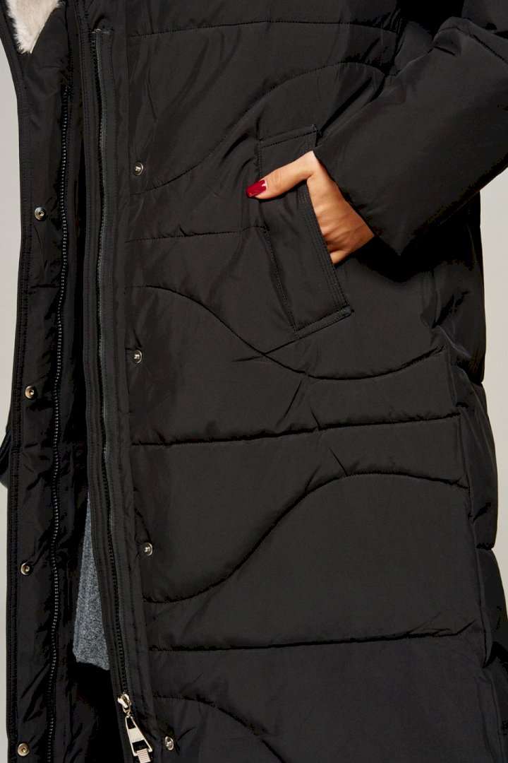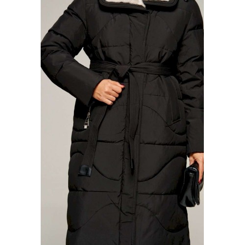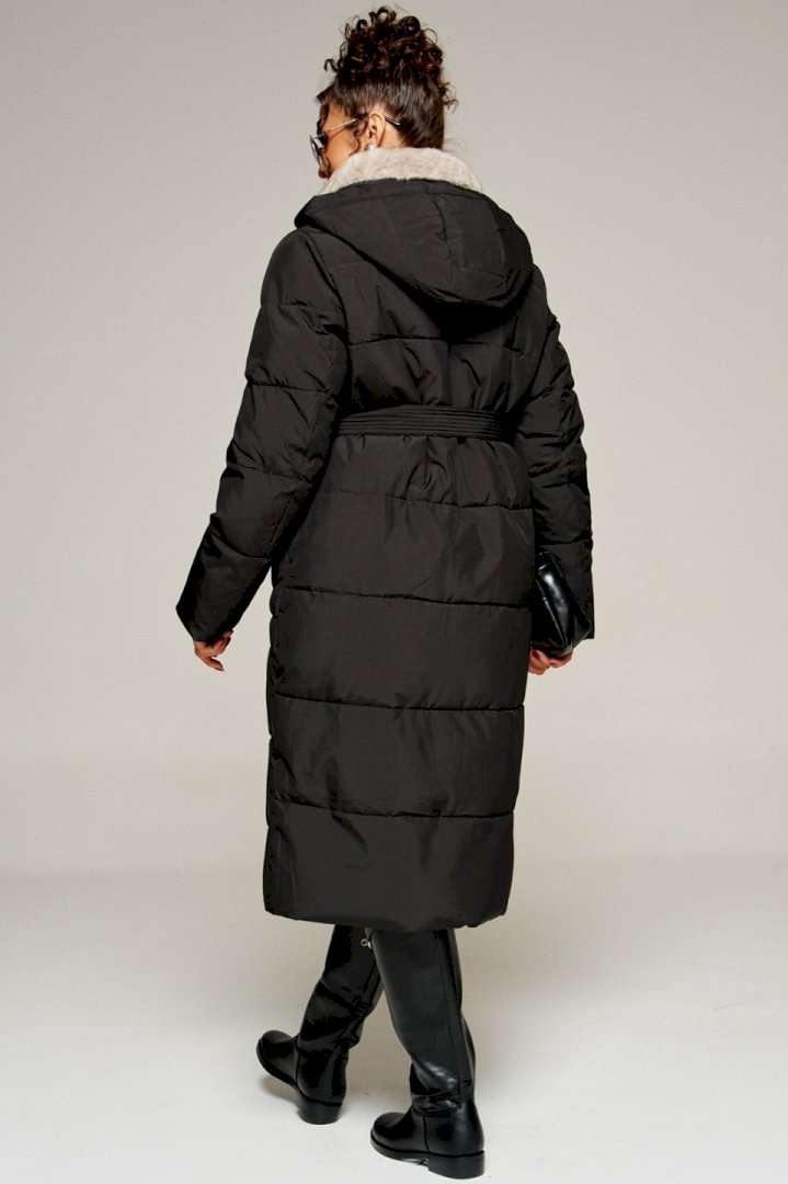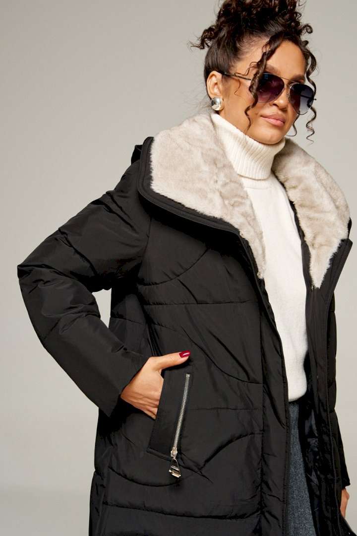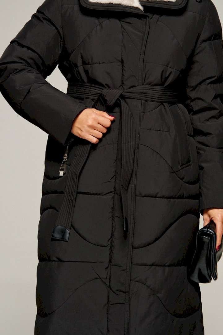 Зимнее, стеганое пальто прямого силуэта для ценителей стиля и практичности. Это отличное сочетание современных материалов и точного кроя. Лёгкое, удобное и классическое пальто подходит для холодных дней, обеспечивая тепло и комфорт в холодную погоду. Идеально сочетает в себе сдержанность и расслабленность, универсальность и гармоничность. Пальто выполнено из прочной, влагостойкой и приятной на ощупь полиэстерной ткани; на синтетической подкладке. Утеплитель холофайбер 250 г/м. кв. предназначен для использования изделия при температурном режиме от -10 до -25 градусов. Модель прямого силуэта, базового кроя; предназначена для повседневной носки. Перед с симметричными боковыми прорезными карманами с широкой обтачкой, фиксируемые на кнопку. Спинка цельнокроеная. Рукав длинный втачной двухшовный. По низу внутри рукава предусмотрена дополнительная вставка в виде притачной трикотажной манжеты. Воротник тип «апаш» с возможностью застегивания до верха. Внутренняя часть воротника обработана искусственным мехом «норка». Капюшон съемный (на кнопках) умеренного объема. По периметру капюшона протянут шнур в цвет изделия с декоративными металлическими фиксаторами. Застежка центральная на двустороннюю молнию от уровня груди до низа под ветрозащитной планкой и кнопки по краю борта. Низ изделия ровный. Подкладка гладкая с наличием внутреннего кармана слева. К изделию прилагается пояс-завязка. Длина (по среднему шву спинки) ~ 113 см. (+2 см.) Длина рукава ~ 65 см. (+1.5 см.) С учетом плюсовых прибавок подходит на рост 170 см.