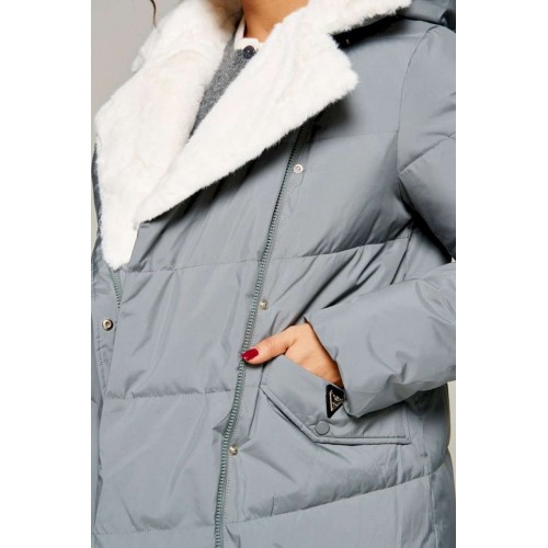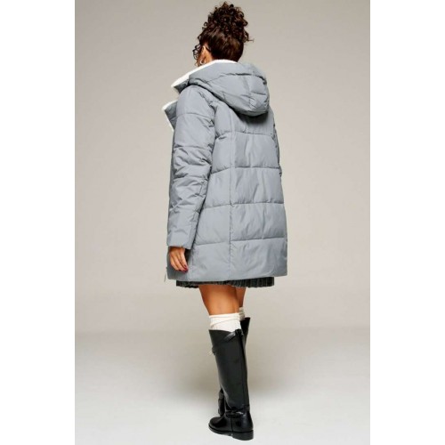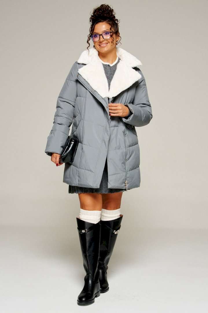 Зимнее, стеганое пальто прямого силуэта для ценителей стиля и практичности. Это отличное сочетание современных материалов и точного кроя. Лёгкое, удобное и классическое пальто подходит для холодных дней, обеспечивая тепло и комфорт в холодную погоду. Идеально сочетает в себе сдержанность и расслабленность, универсальность и гармоничность. Пальто выполнено из прочной, влагостойкой и приятной на ощупь полиэстерной ткани; на синтетической подкладке. Утеплитель холлофайбер 250 г/м. кв. предназначен для использования изделия при температурном режиме от -10 до -25 градусов. Модель прямого силуэта, базового кроя; предназначена для повседневной носки. Перед с симметричными боковыми прорезными карманами с клапаном, фиксируемые на кнопку. Слева на клапане расположен отделочный элемент. Спинка цельнокроеная. Рукав длинный втачной двухшовный. По низу внутри рукава предусмотрена дополнительная вставка в виде притачной трикотажной манжеты. Воротник пиджачного типа с возможностью застегивания до верха. Внутренняя часть воротника и лацканы обработаны искусственным мехом. Капюшон съемный (на молнии) умеренного объема. По периметру капюшона протянут шнур в цвет изделия с декоративными металлическими фиксаторами. Застежка смещенная на двустороннюю молнию от верха до низа под ветрозащитной планкой и кнопки по краю борта. Низ изделия ровный. Подкладка гладкая с наличием внутреннего кармана слева. Длина (по среднему шву спинки) ~ 86 см. (+2 см.) Длина рукава ~ 65 см. (+1.5 см.) С учетом плюсовых прибавок подходит на рост 170 см.