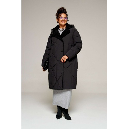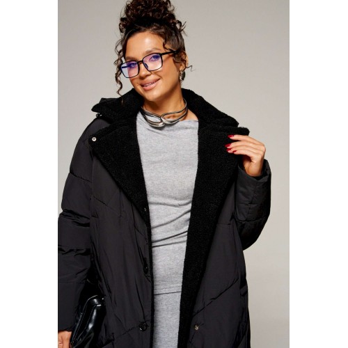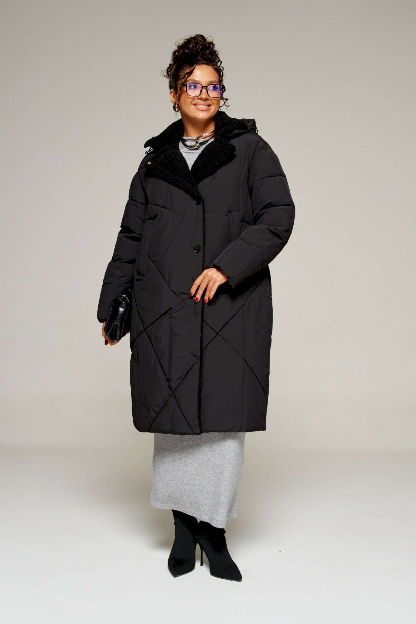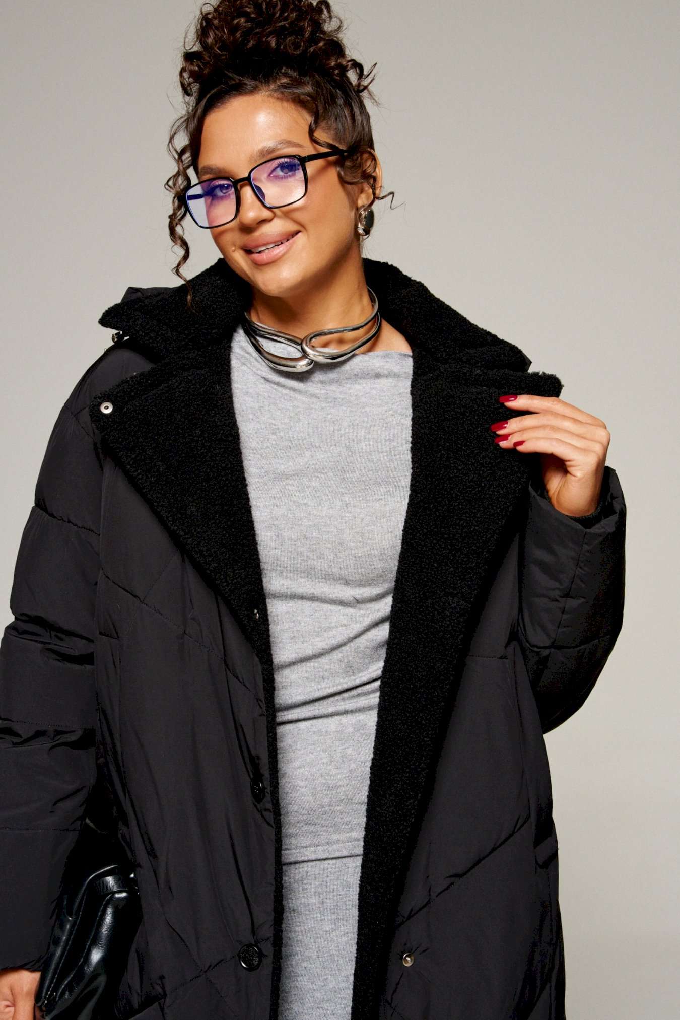Наше теплое пальто— идеальный выбор для инвестиции в гардероб. Силуэт эффектно подчёркивает фигуру, а в меру свободный крой не сковывает движений. Благодаря качественному утеплителю пальто отлично согревает, а его цветовая гамма отвечает всем актуальным направлениям моды. Пальто выполнено из прочной, влагостойкой и приятной на ощупь полиэстерной ткани; на синтетической подкладке. Утеплитель холлофайбер 200 г/м. кв. предназначен для использования изделия при температурном режиме от -10 до -20 градусов. Модель прямого силуэта, базового кроя; предназначена для повседневной носки. Перед асимметричный. С правой стороны расположены кокетка и вертикальный подрез от неё. В кокетку вставлена декоративная молния и клапан с пришивным отделочным элементом. На центральной правой части переда расположен боковой прорезной карман с обтачкой. С левой стороны – два вертикальных рельефа: от плеча (в который вставлена часть молнии) и от проймы, а также боковой прорезной карман на молнии с декоративным фиксатором. Центральные части переда выполнены из отделочной стеганой ткани с блеском аналогичного оттенка с цветом изделия. Спинка с широкой кокеткой, заканчивающейся мягкой складкой и двумя боковыми вертикальными рельефами от кокетки. Рукав втачной длинный двухшовный. По низу внутри рукава предусмотрена дополнительная вставка в виде притачной трикотажной манжеты. Капюшон умеренного объема, застегивающийся спереди. По периметру капюшона вставлен шнур с декоративными фиксаторами. Застежка смещенная на двустороннюю молнию от верха до низа. Низ изделия ровный. Для удобства движения внизу в боковых швах предусмотрены небольшие разрезы. Подкладка гладкая с наличием внутреннего кармана слева. Длина (по среднему шву спинки) ~ 107 см. (+2 см.) Длина рукава ~ 65,5 см. (+1.5 см.) С учетом плюсовых прибавок подходит на рост 170 см.