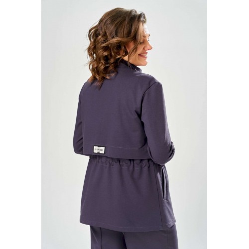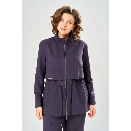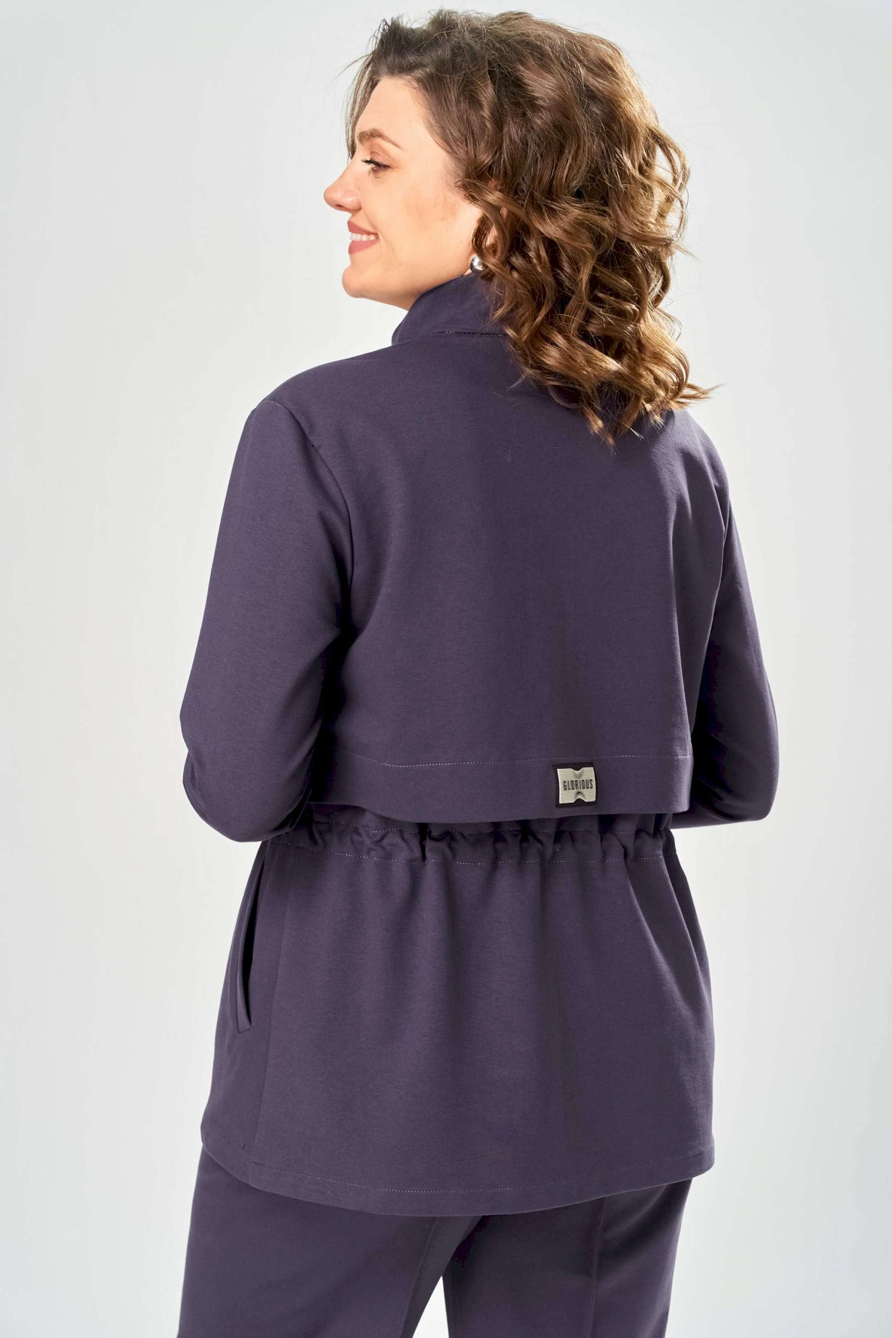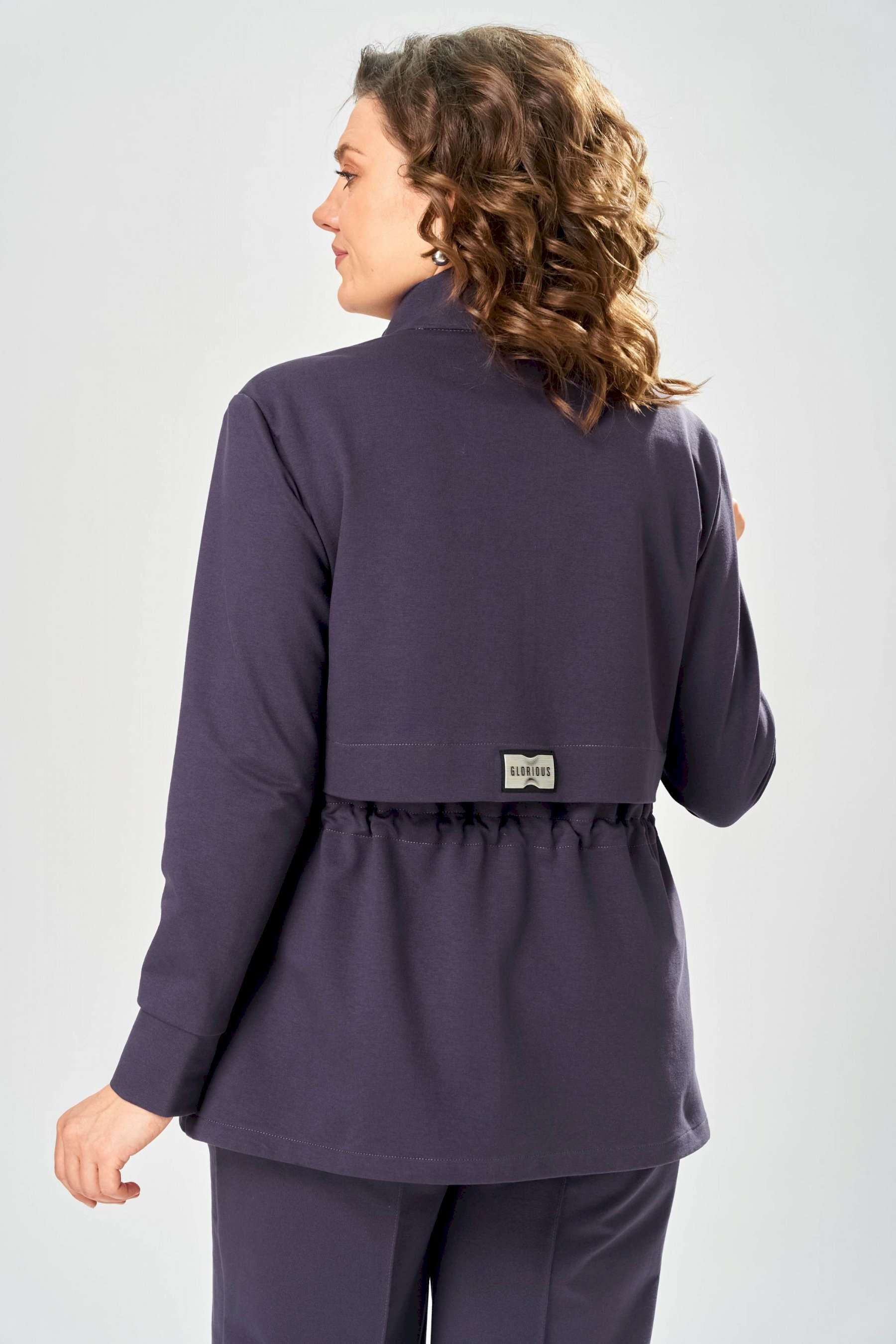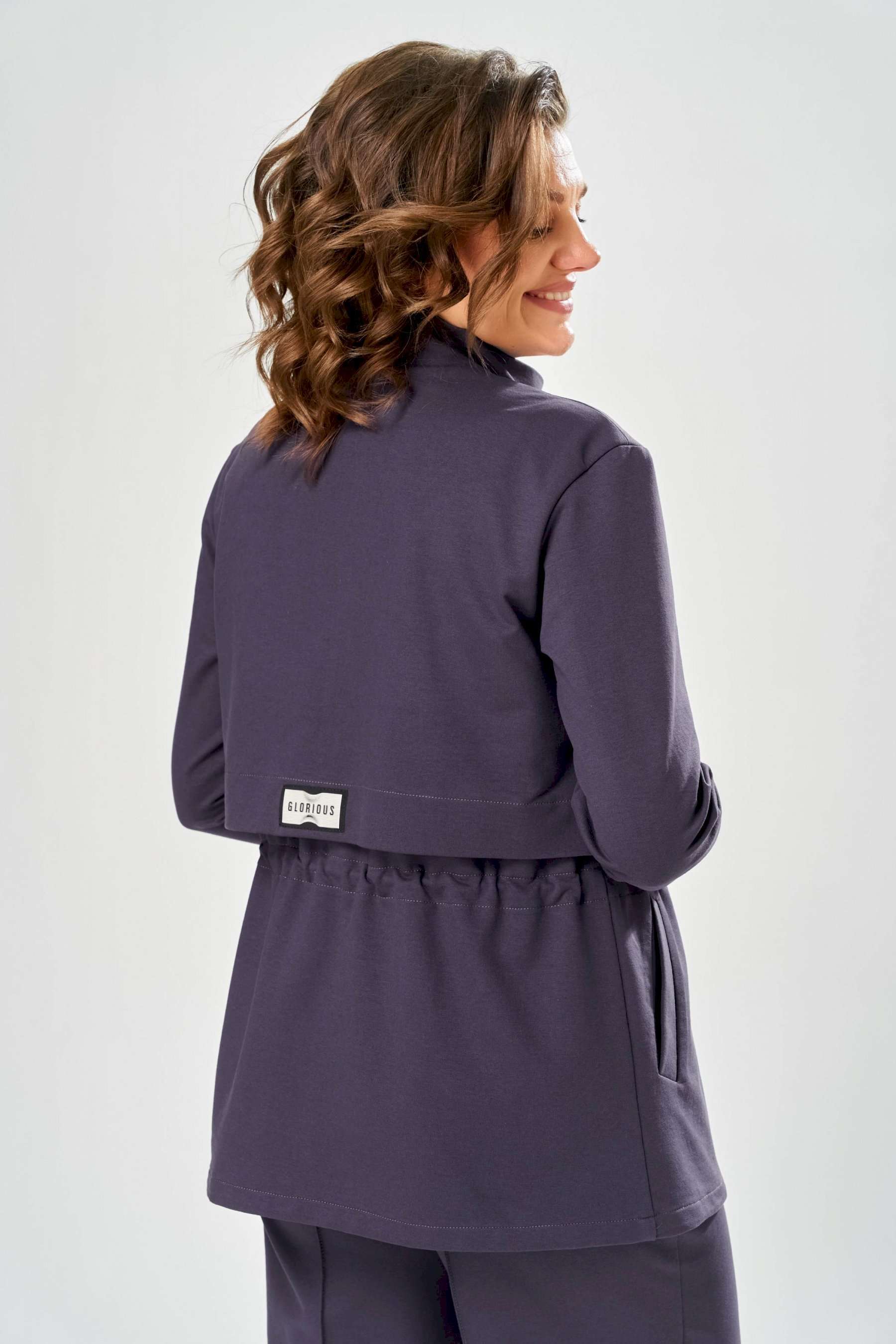 Костюм женский. Стильный женский костюм из трикотажного футера, состоит из жакета и брюк . Жакет полуприлегающего силуэта с центральной застежкой на декоративную молнию, лиф с отлетными кокетками по переду и спинке. Горловина оформлена стойкой. По переду на уровне бедер прорезные карманы с листочкой. На линии талии настрочная кулиса с декоративным шнуром. Рукава втачные с манжетой по низу. Брюки прямые с застроченными стрелками по переду и спинке , верх брюк на резинке. Длина жакета – 70 см Длина рукава – 59 см Длина брюк по боковому шву – 109 см Длина брюк по шаговому шву – 81 см