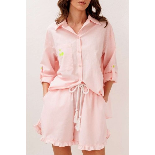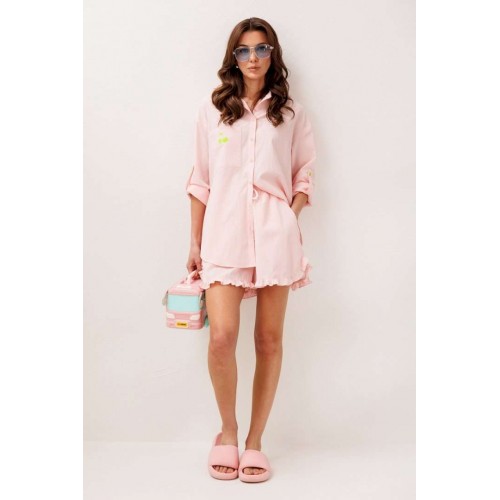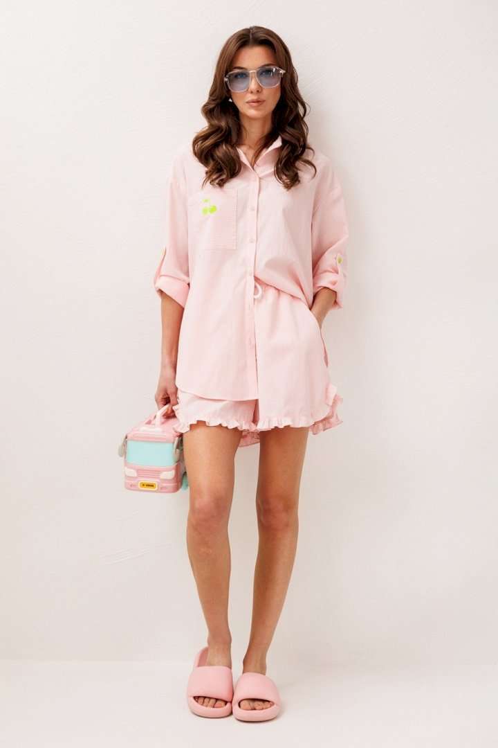 Блузка 3297 розовый BUTER — это идеальный выбор для стильных и современных женщин. Коллекция бренда BUTER предлагает белый блузон из 100% хлопка, который обеспечивает комфорт и воздухопроницаемость. Прямой силуэт и втачной одношовный рукав с патой в комбинации с центральной застежкой на пуговицы делают эту модель практичной и стильной. Изделие украшено принтом "Cherry" на накладном кармане, добавляющим игривую нотку в повседневный гардероб. Фигурный низ и разрезы по бокам добавляют легкости и свободы движений, что делает эту блузку идеальной для летнего сезона. Универсальный розовый цвет позволяет сочетать её с любыми другими элементами гардероба.