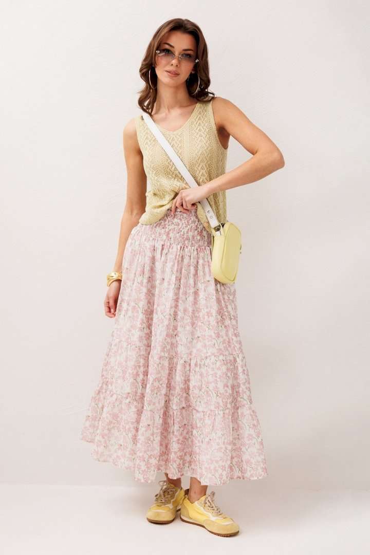 Юбка 3299 розовые цветы BUTER — это восхитительное дополнение к вашему весенне-летнему гардеробу. Коллекция бренда BUTER предложит вам стильную шифоновую юбку А-силуэта с притачной кокеткой и эластичной резинкой для комфортной посадки. Два слегка присборенных волана добавляют динамики и лёгкости образу. Юбка выполнена из полиэстера, что обеспечивает лёгкость и простоту в уходе. Цветочный рисунок делает её идеальной для повседневных прогулок и особых мероприятий во время тёплых сезонов. Модель оснащена подкладкой для дополнительного комфорта, а длина макси подойдет для создания женственного и романтичного силуэта.