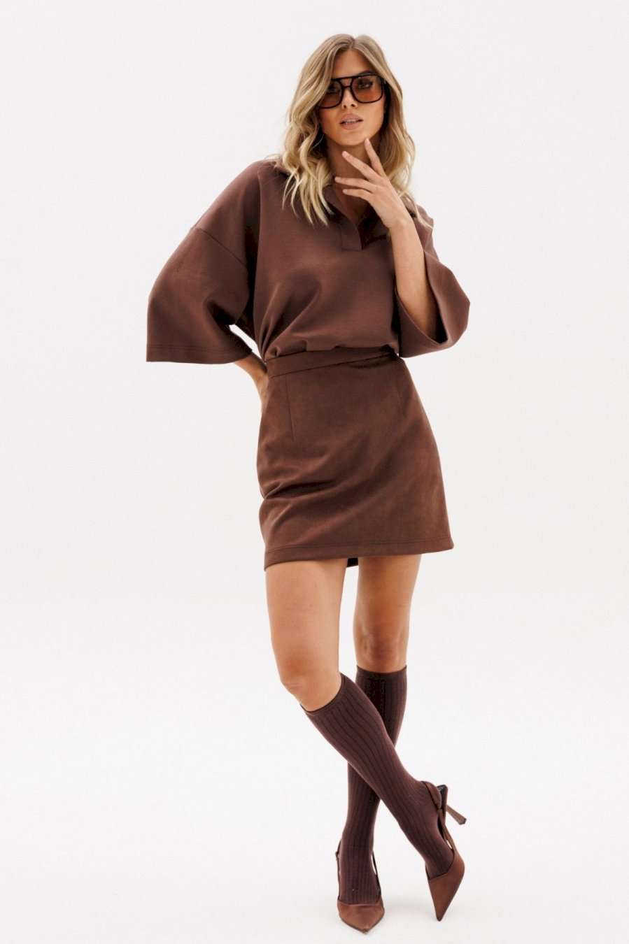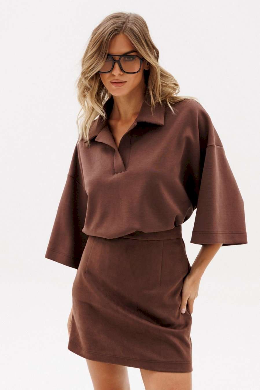 Джемпер выполнен из трикотажного полотна. Джемпер прямого силуэта, длиной до линии бедер. Перед и спинка цельные.Воротник стояче-отложной. Плечевой шов удлинен. Рукав рубашечного покроя, одношовный, длиной до линии локтя. Длина джемпера - 73 см. Длина рукава от горловины - 55,5 см 44 46 48 Длина по центру спинки 73 73 73 Длина рукава от горловины 55,5 55,5 55,5 Объем по груди 132 136 140 Объем по талии 126 130 134 Объем по низу 120 124 128 Объем рукава вверху 52 54 56 Объем рукава внизу 48 49 50