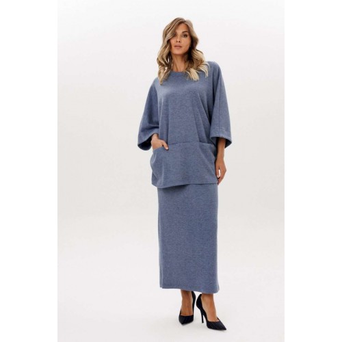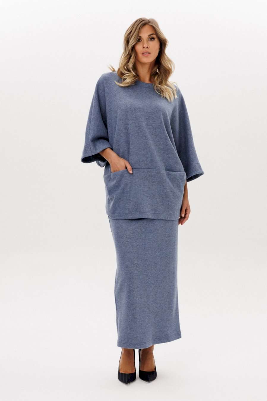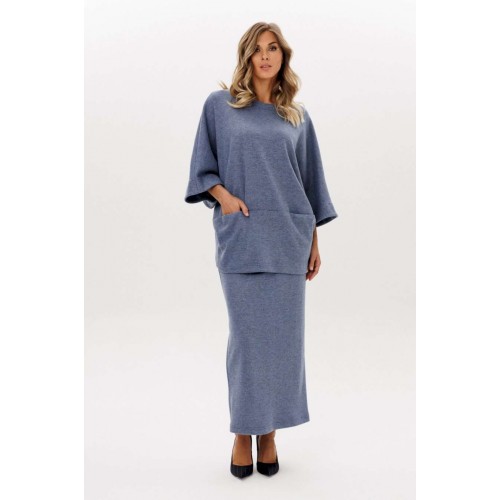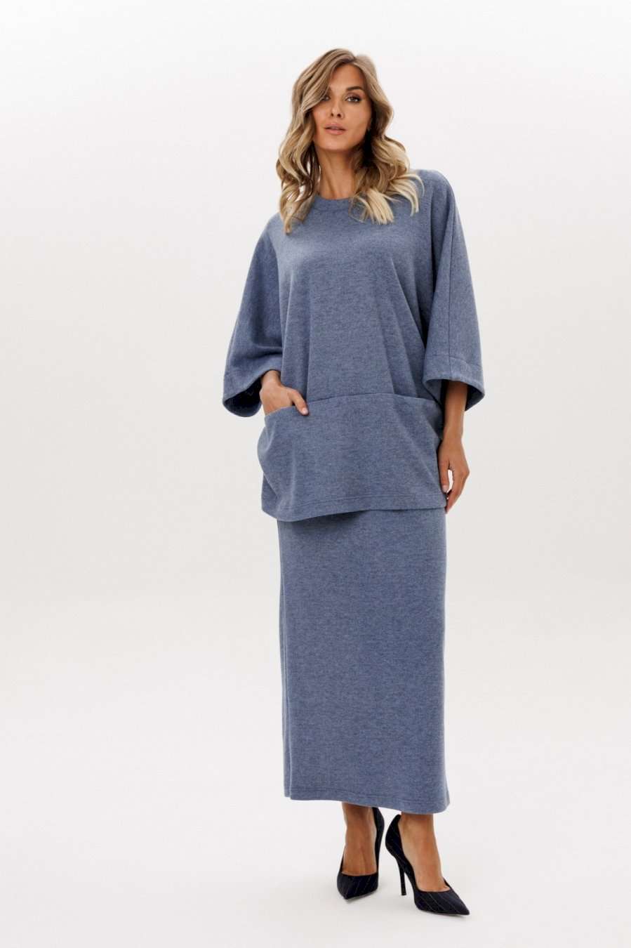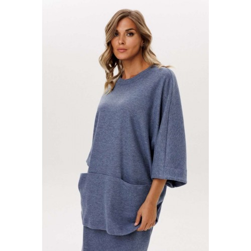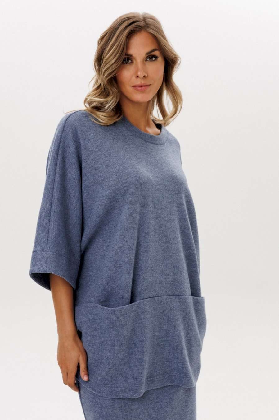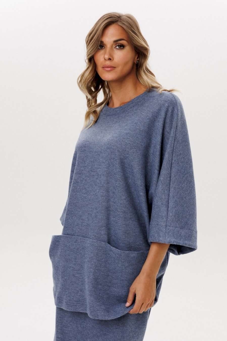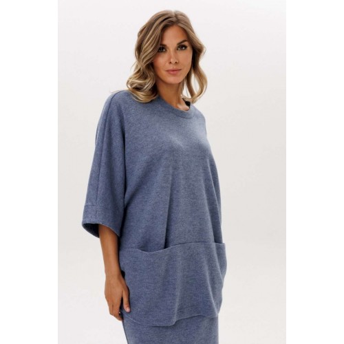 Джемпер выполнен из трикотажного полотна. Джемпер О-образного силуэта, длиной до линии бедер. Спереди карманы в шве. Горловина округлой формы. Рукав цельнокроенный, состоит из передней и задней частей, длиной ниже линии локтя. Длина джемпера: р. 44-48 - 69 см, р. 50-54 - 70,5 см. Длина рукава: р. 44-48 - 50 см, р. 50-54 - 51 см