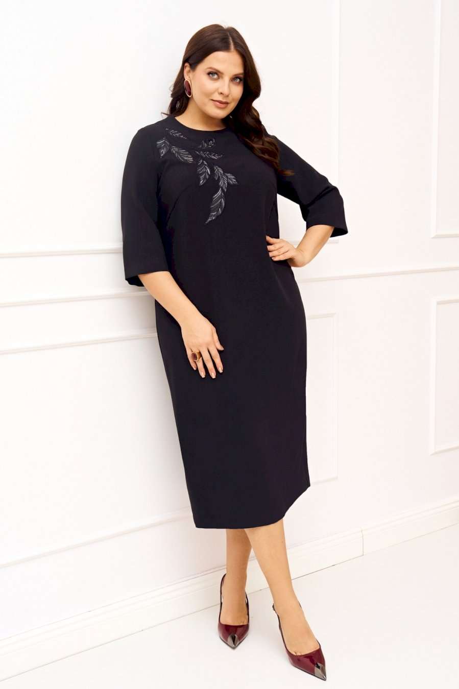 Женское платье полуприлегающего силуэта выполнено из натуральной плательной ткани со втачными рукавами и декоративной дизайнерской вышивкой по переду. По спинке изделия шлица и застежка на тесьму-молнию. Платье полностью соотвествует заявленному размеру. Пожалуйста, пользуйтесь таблицей обмеров готового изделия. Уход за плательной тканью: - стирать при температуре не выше 30 градусов при бережном режиме или ручной стирке.