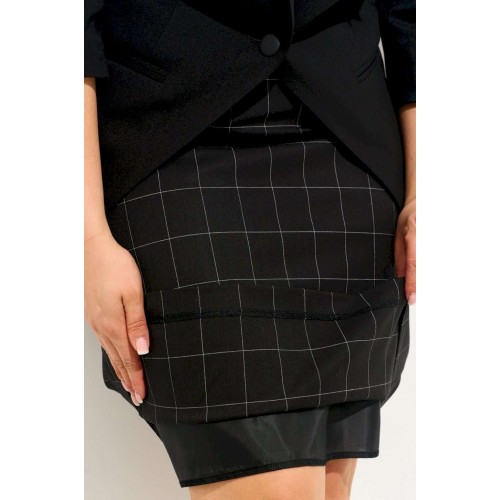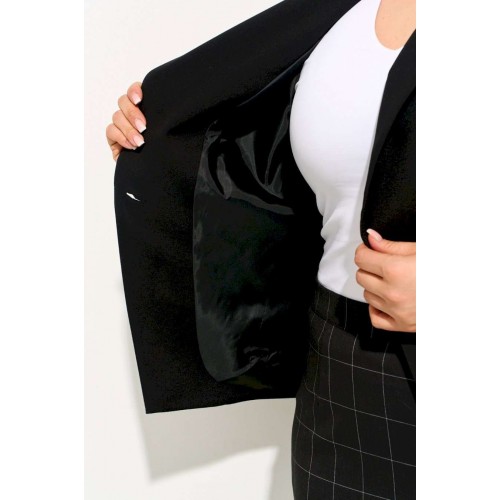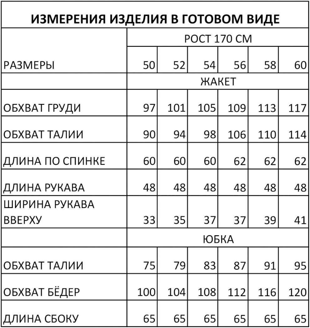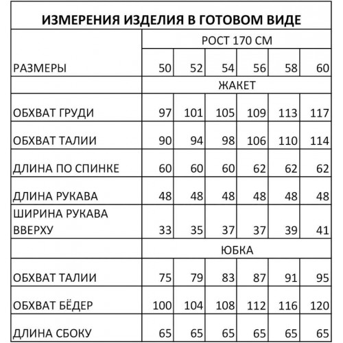 Состав: Полиэстер 55%, вискоза 40%, спандекс 5%; подкладка жакета и юбки полиэстер 100%.