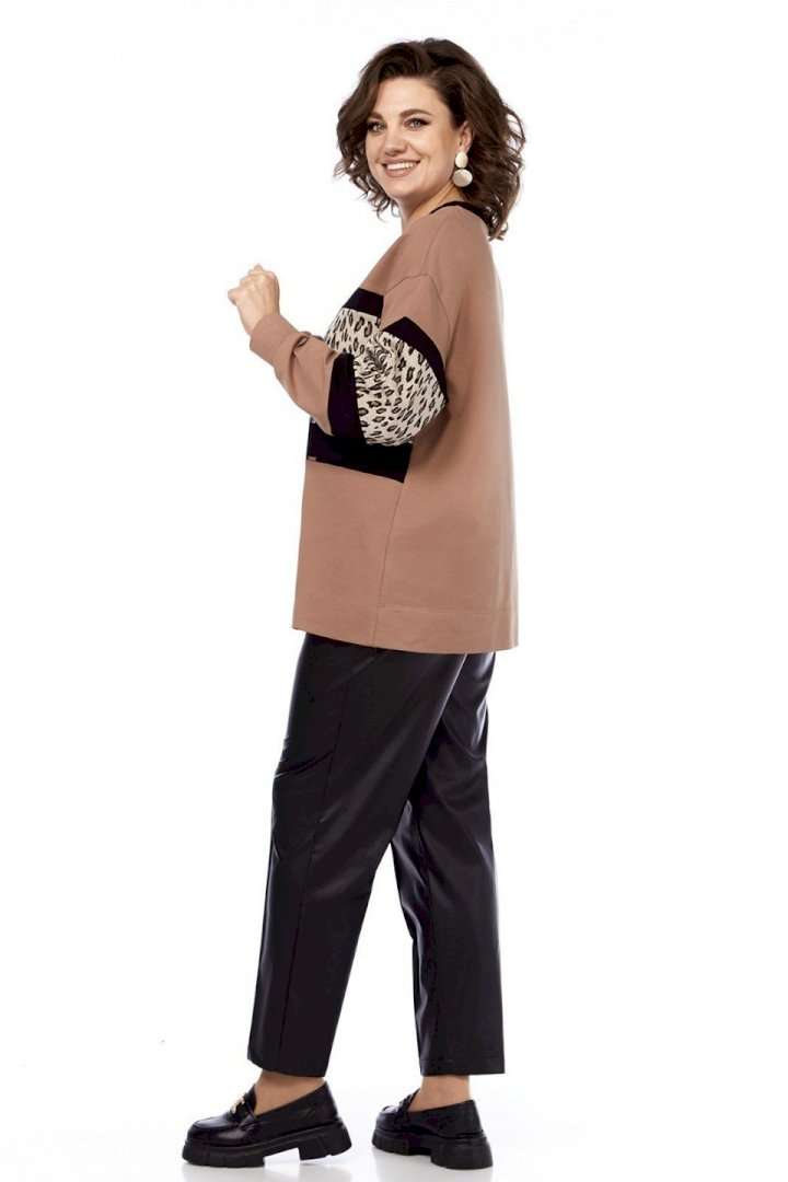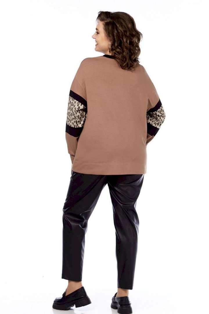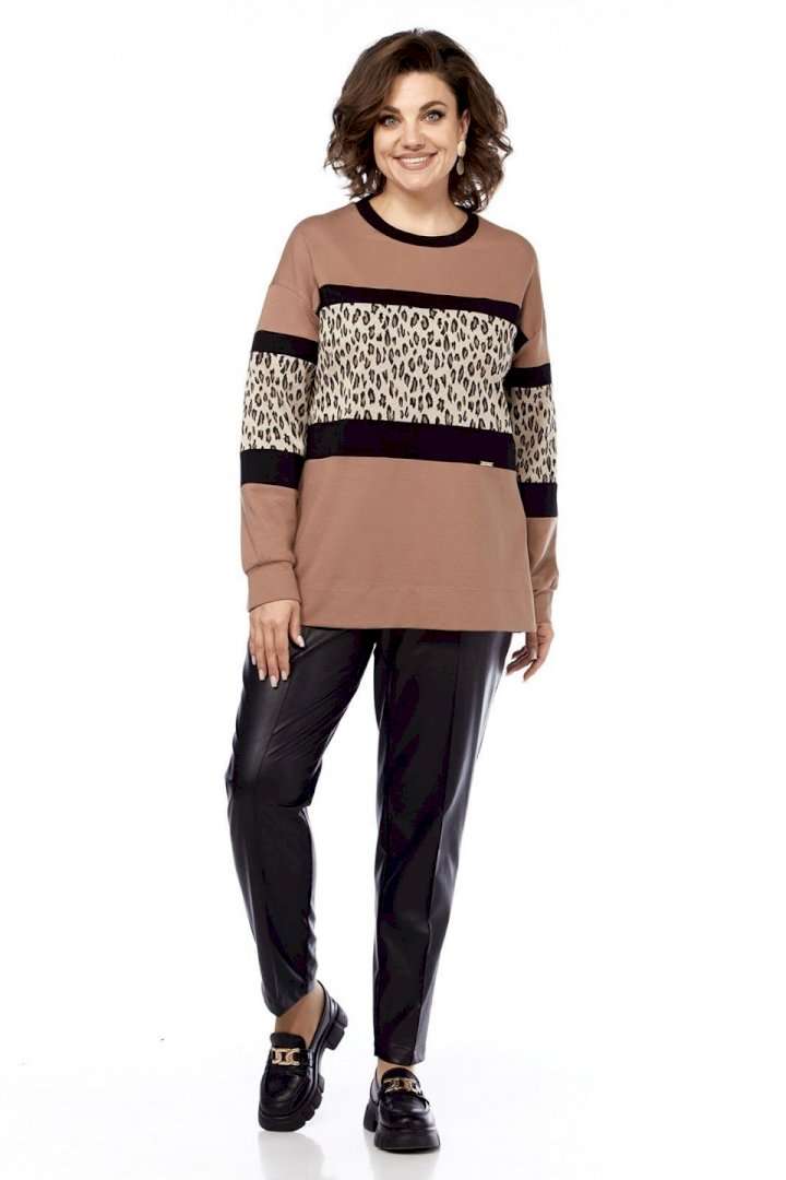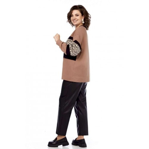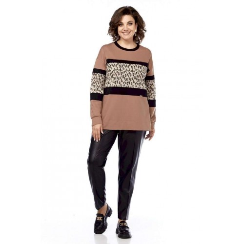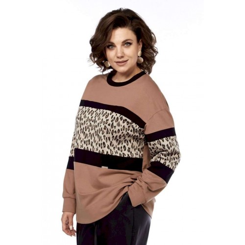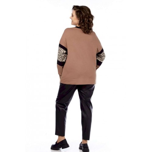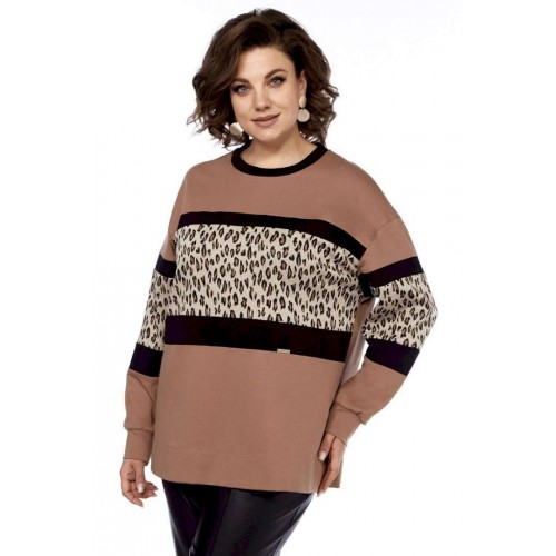 Джемпер женский, выполнен путем комбинирования тканей разной расцветки, из трикотажного полотна, свободного силуэта. Горловина округлой формы обработана планкой. Перед и рукава разрезные с декоративными вставками. Спинка цельнокроеная. Рукава спущенные на манжете. Обращаем Ваше внимание, что цвет на экране может отличаться от реального.