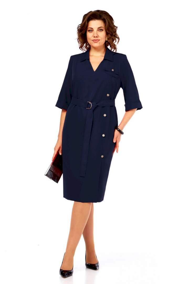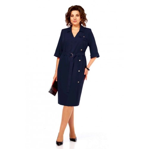 Платье женское прямого силуэта, выполнено из костюмно-плательной ткани. Вырез V-образной формы с отложным воротником. По переду обработан ассиметричный рельеф со шлицей по низу и декоративный клапан на груди. Спинка с кокеткой и средним швом. Рукава втачные, по низу отложные манжеты. Платье дополнено съемным поясом из основной ткани с полукольцами и декоративными пуговицами. Обращаем Ваше внимание, что цвет на экране может отличаться от реального.