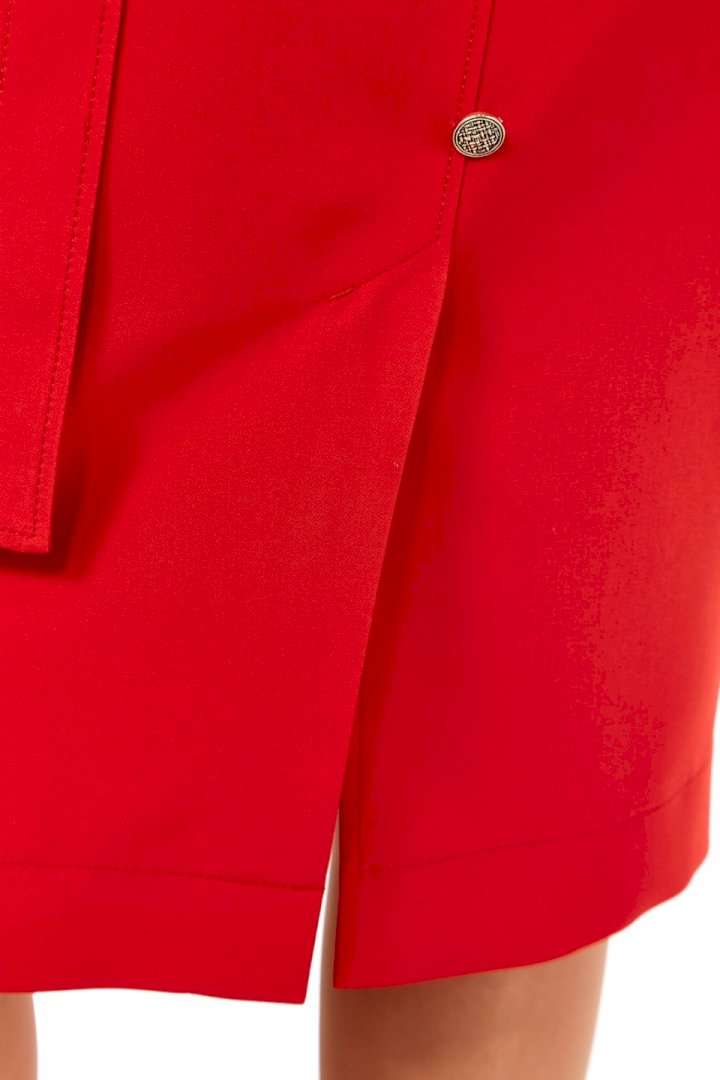 Платье женское прямого силуэта, выполнено из костюмно-плательной ткани. Вырез V-образной формы с отложным воротником. По переду обработан ассиметричный рельеф со шлицей по низу и декоративный клапан на груди. Спинка с кокеткой и средним швом. Рукава втачные, по низу отложные манжеты. Платье дополнено съемным поясом из основной ткани с полукольцами и декоративными пуговицами. Обращаем Ваше внимание, что цвет на экране может отличаться от реального.