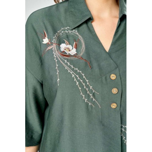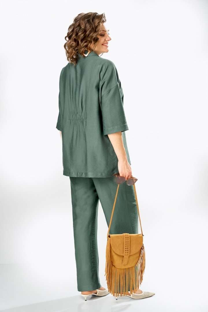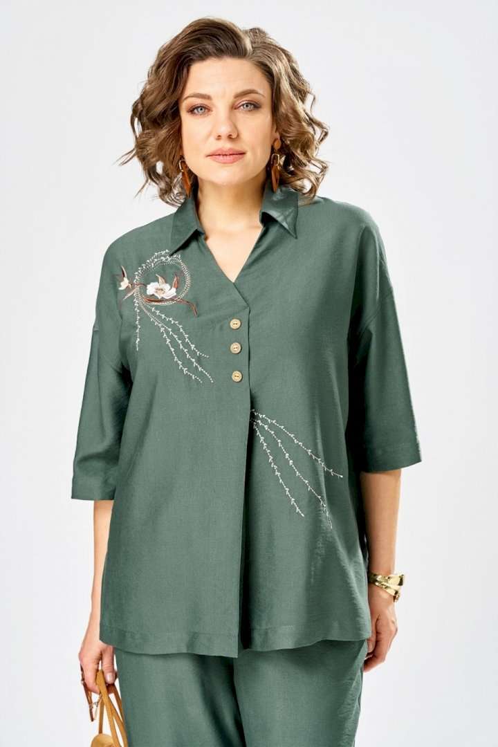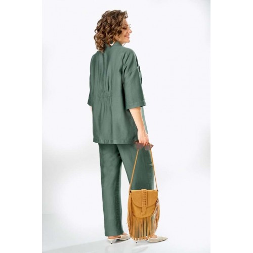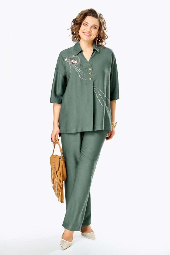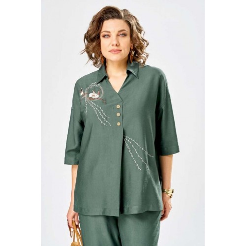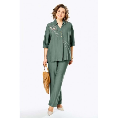Костюм брючный 3460 Jurimex — универсальное решение для стильного гардероба. Коллекция бренда Jurimex выполнена из ткани с эффектом крэша, сочетая в себе изящную вышивку и классический силуэт. Блуза свободного кроя с V-образной горловиной и стояче-отложным воротником добавляет стильности и комфорта, а эластичная кулиска на спинке подчеркивает линию талии. Длина блузы по спинке составляет 75 см, а плечо с рукавом — 55 см. Брюки прямого кроя с эластичным поясом и карманами в боковых швах обеспечивают комфорт и удобство. Общая длина брюк — 108 см. Этот костюм подходит для весны и осени, он будет незаменим как для деловых встреч, так и для повседневной носки. Насыщенный зеленый цвет добавит свежести в ваш гардероб.