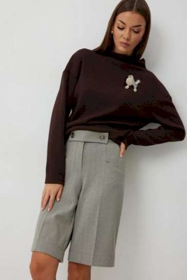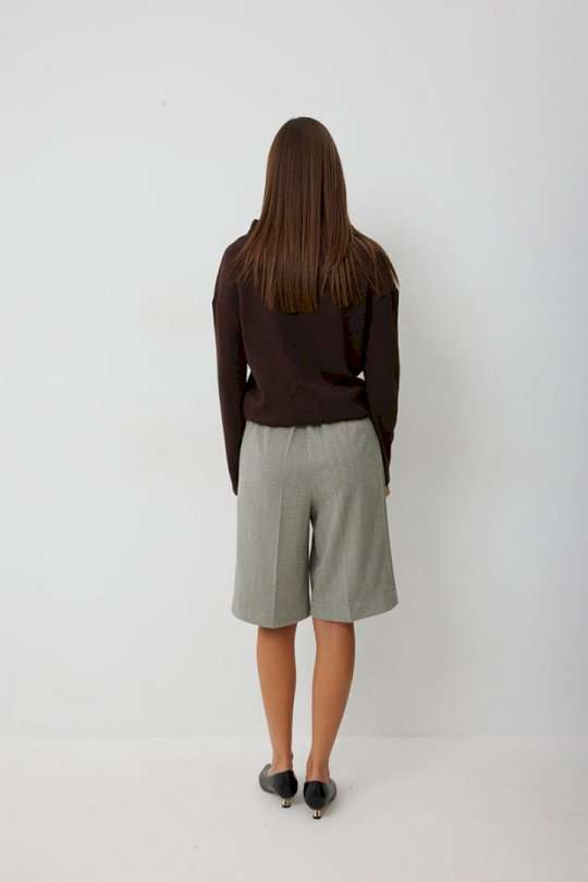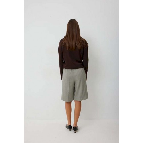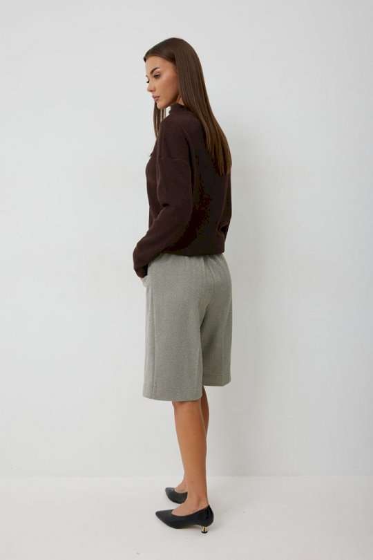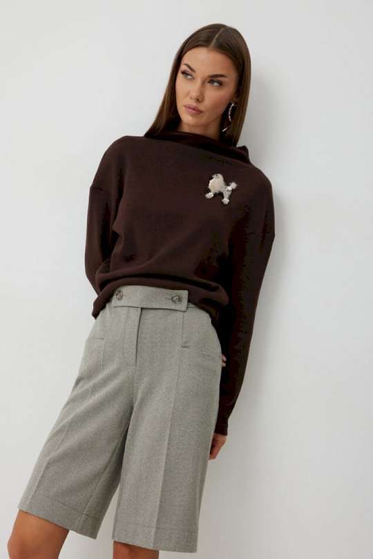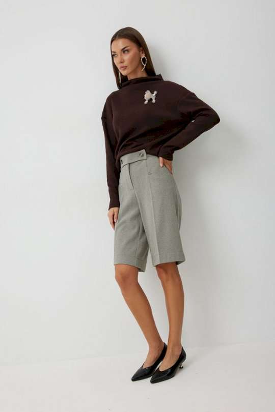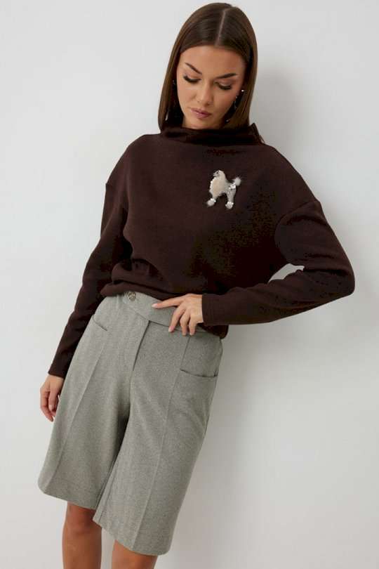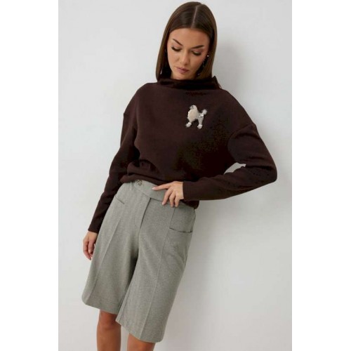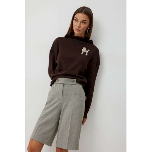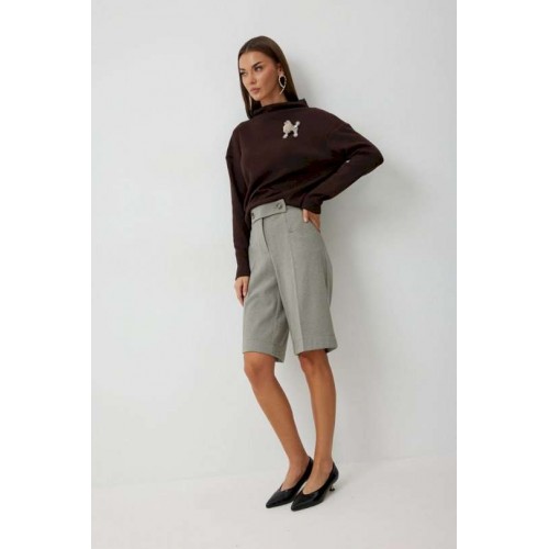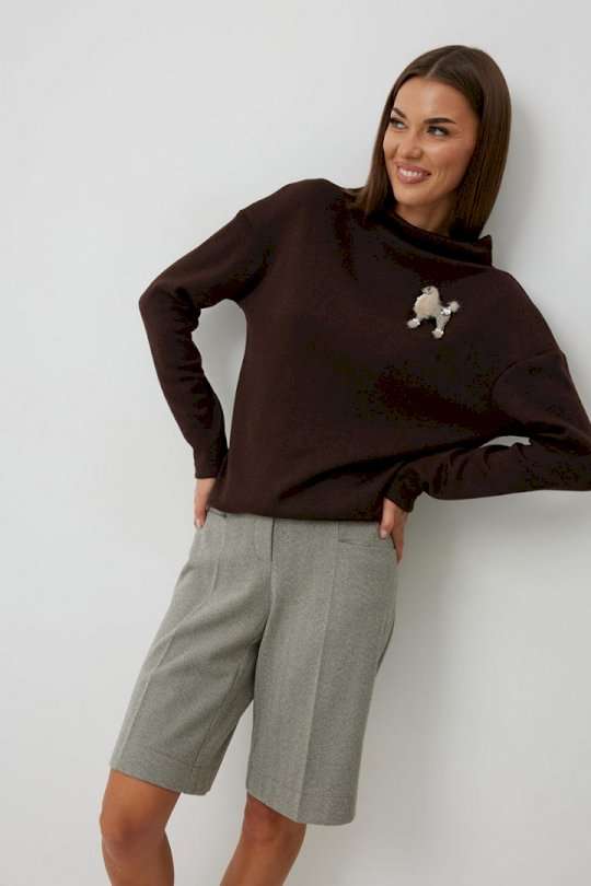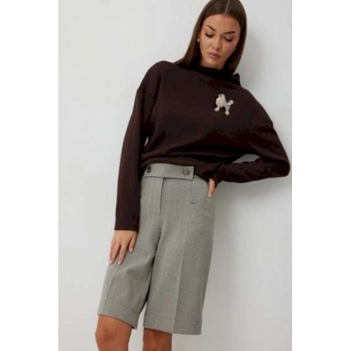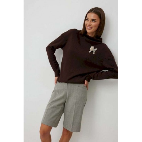Блузон женский с цельнокроеной горловиной типа \"\"хомут\"\". Линия плеча и проймы спущены. Рукав втачной, одношовный. Блузон декорирован авторской брошью. Декоративные элементы и фурнитура могут отличаться от заявленных на фото. Цвет материала может отличаться по тону в зависимости от настроек вашего монитора! Длина изделия по спинке от плеча- 68 см, Длина рукава от горловины 75,5 см.