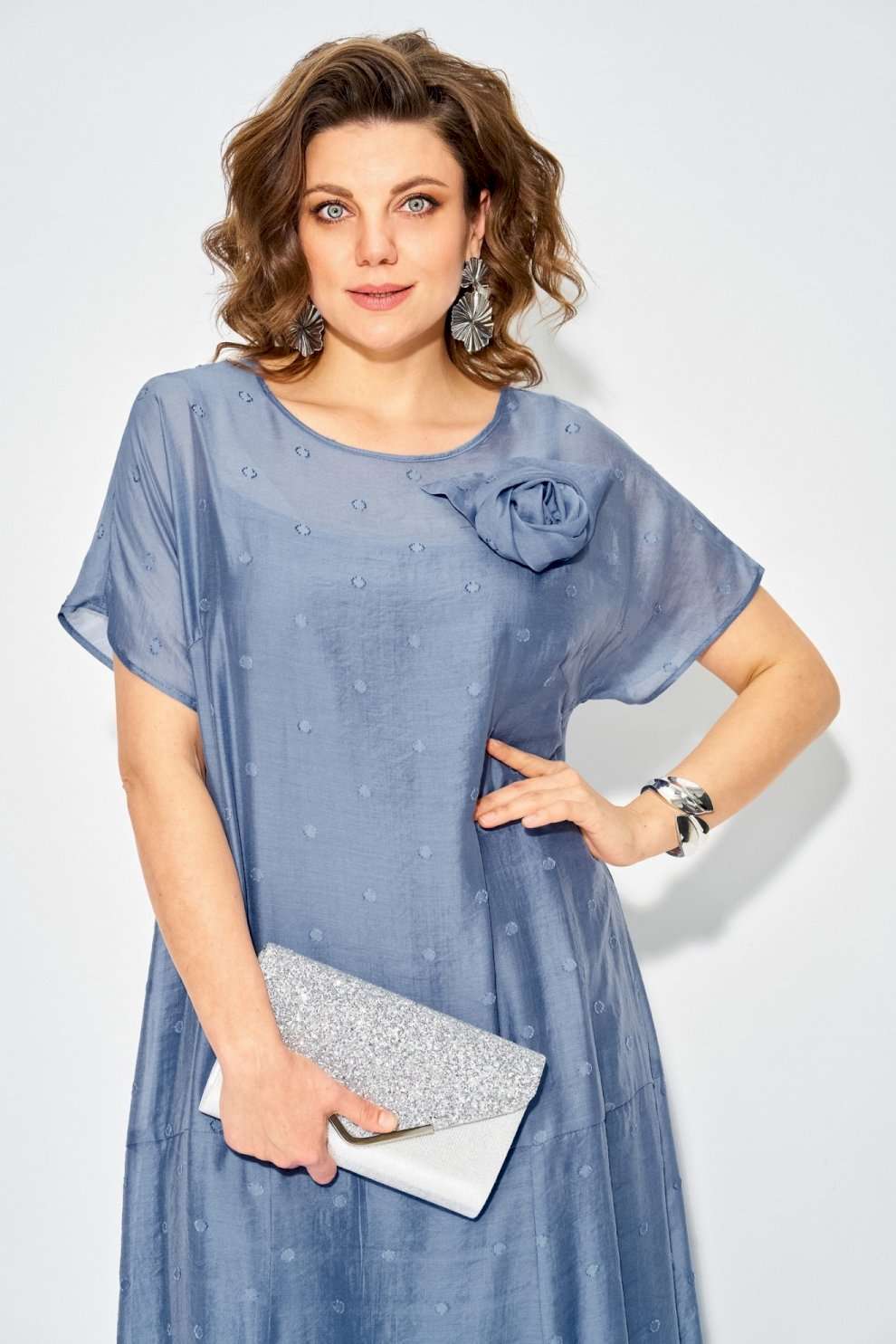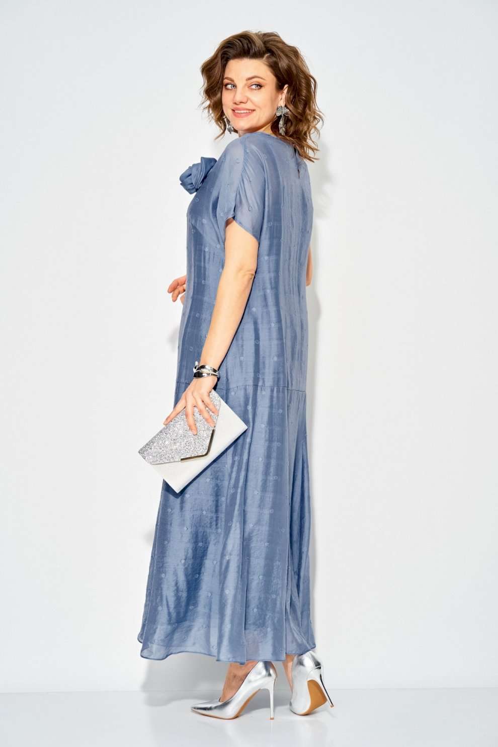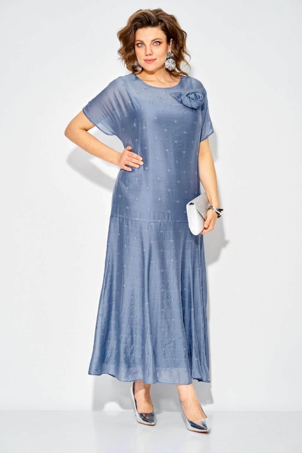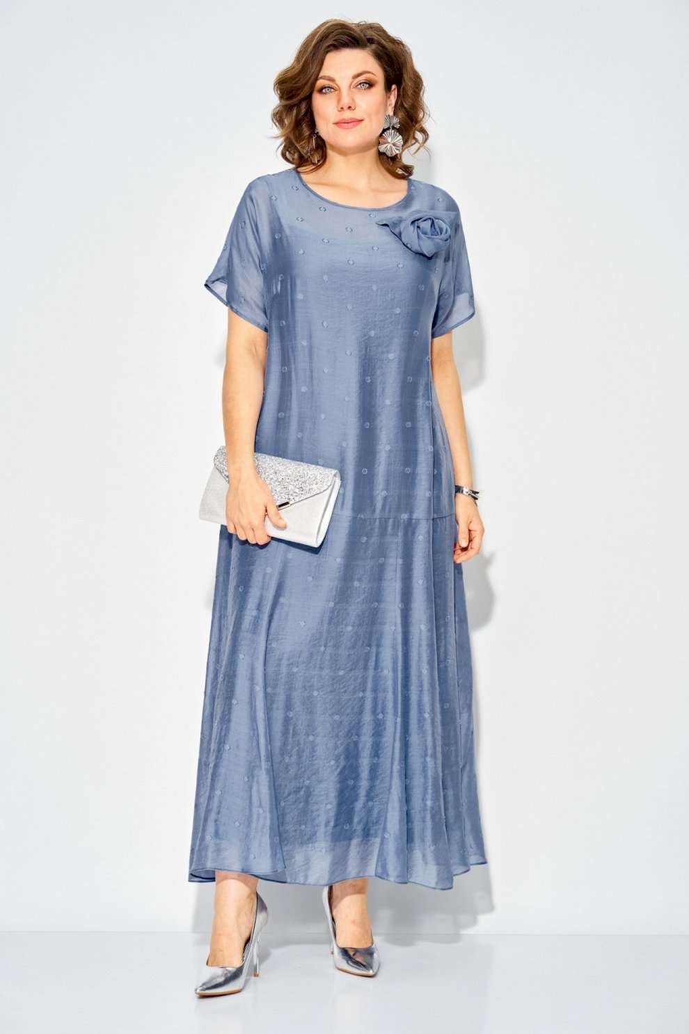 Платье 1524 Liliana-style из коллекции бренда LILIANA – это воплощение женственности и утонченного стиля. Изготовлено из легкой вискозы, что придаёт ему мягкость и комфорт в ношении. Свободный силуэт с округлым вырезом и короткими рукавами создают романтичный образ, а макси-длина подчеркивает изящество. Платье украшено съемной брошью в виде цветка, акцентируя внимание на линии лифа. Модель идеально подходит для торжественных мероприятий, благодаря универсальному праздничному стилю и нежному бирюзовому цвету. Длина изделия составляет 145 см, что делает его идеальным выбором как для дневных выходов, так и для вечеринок.
