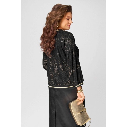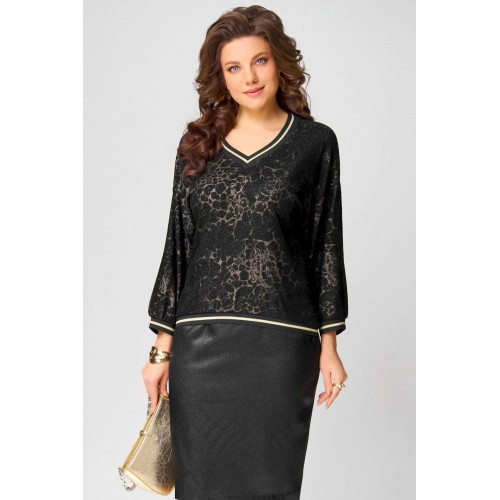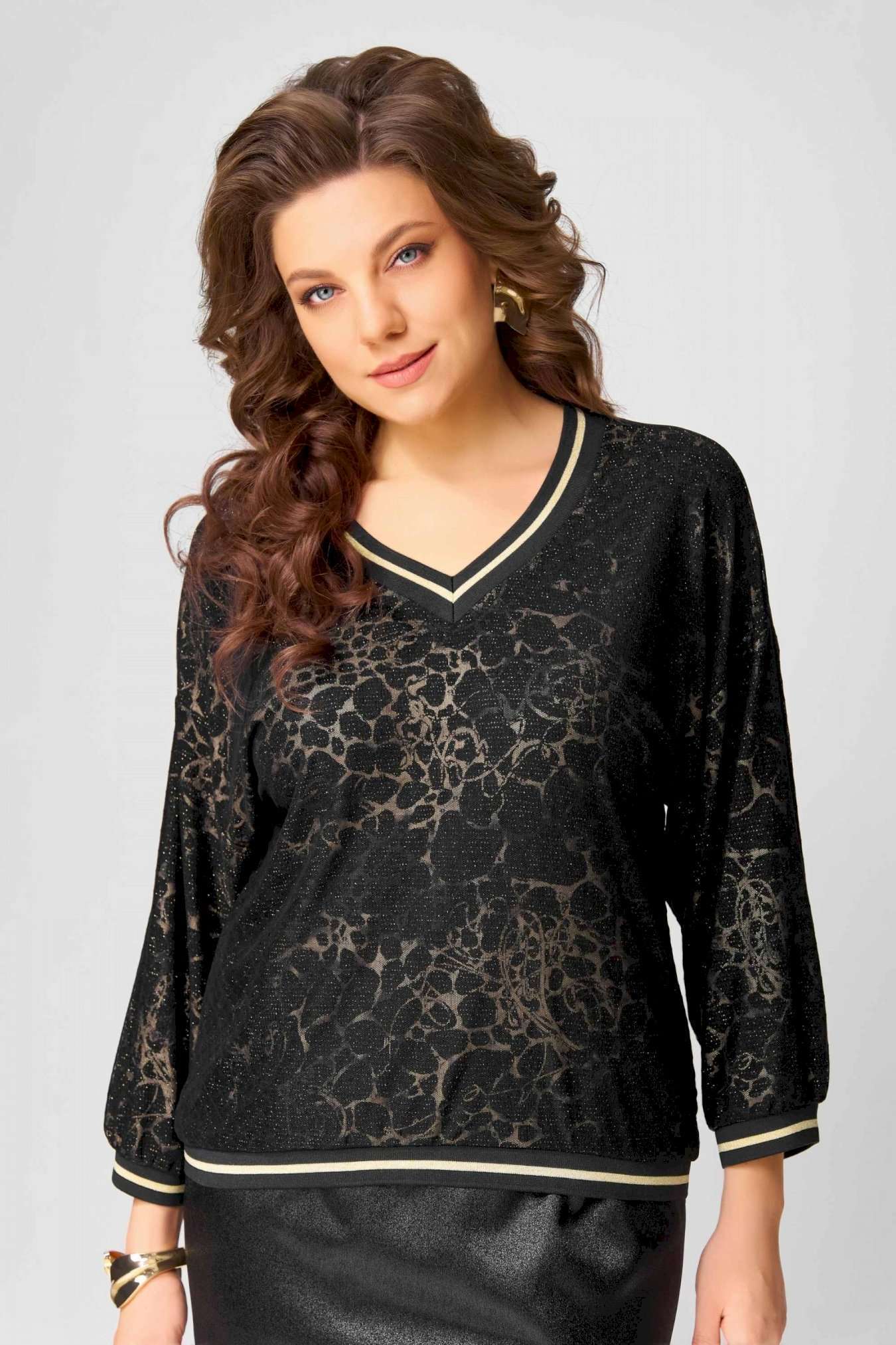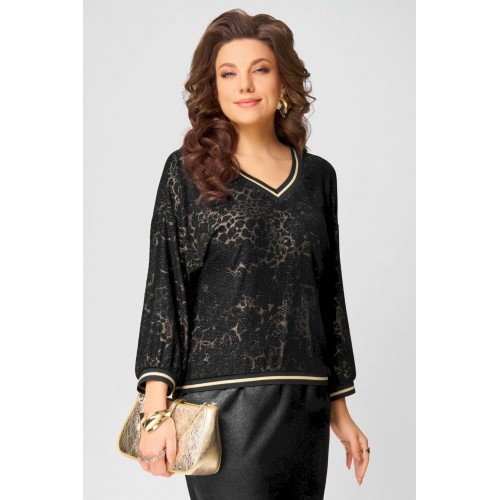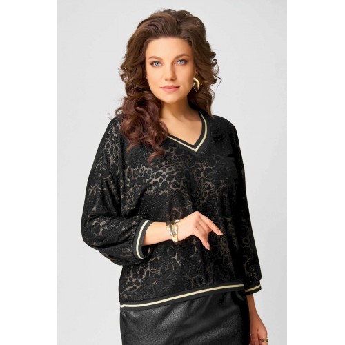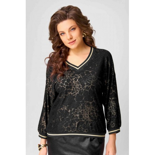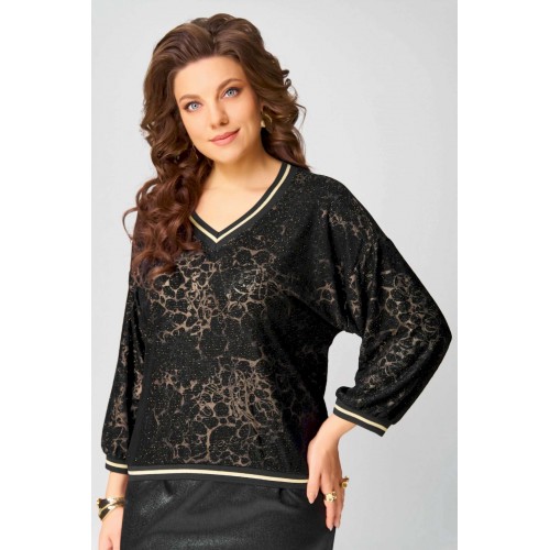 Нарядный джемпер ""Ираида"" свободного покроя выполнен из мягкого трикотажного полотна с декоративной сеткой, создающей эффект многослойности и воздушности. Спущенный рукав придаёт образу расслабленную элегантность, а V-образная горловина, обработанная довязом, подчёркивает линию шеи. Низ изделия и рукавов также оформлены довязом, что придаёт завершённость и аккуратность силуэту. Идеальный выбор для праздничного выхода, вечернего образа или стильного повседневного наряда.