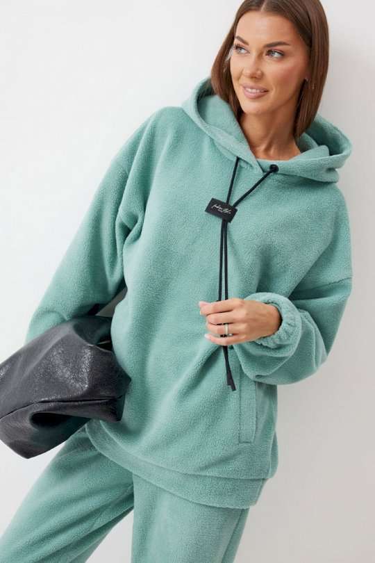 Джемпер прямого силуэта из комфортного трикотажного полотна. Горловина обработана капюшоном. Рукав со спущенной линией плеча, по низу на резинке. По низу джемпера притачной пояс. По переду декоративная нашивка и шнур. Обращаем ваше внимание, что фурнитура может отличаться от фото. Подходит на рост 164-170 см. Длина джемпера (44-48р – 70см)(50-54р – 70см)(56-60р - 72см). Длина рукава от горловины (44-48р – 76см)(50-54р - 76,5см)(56-60р - 77см).