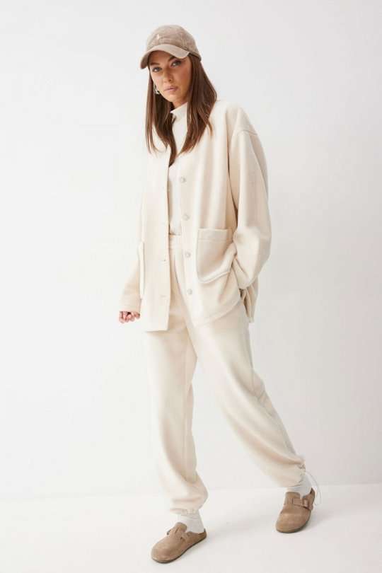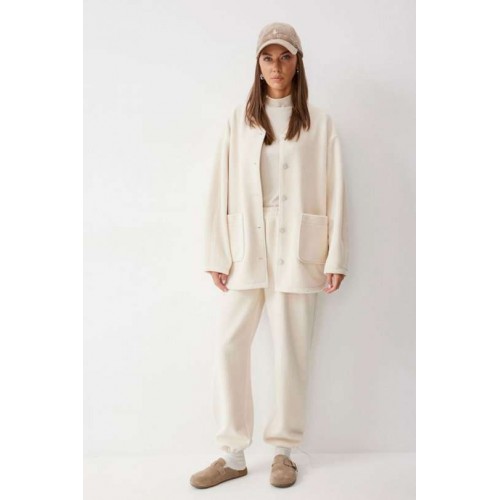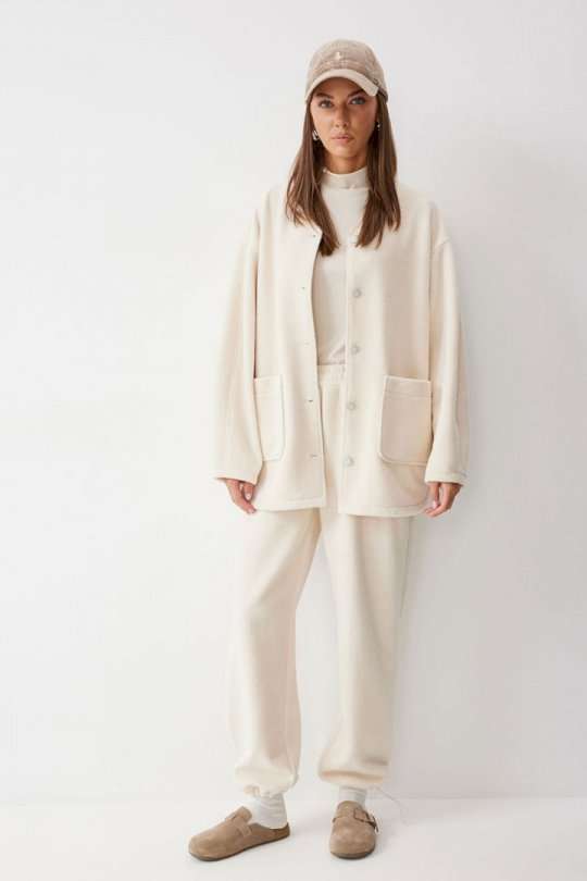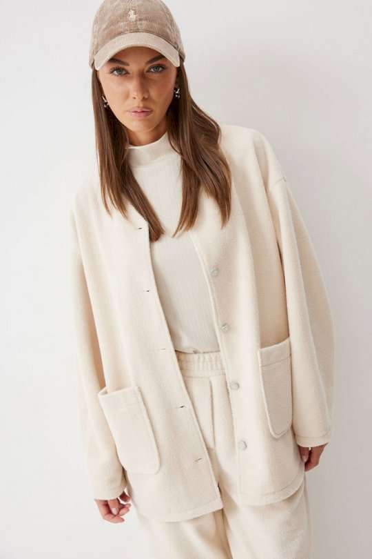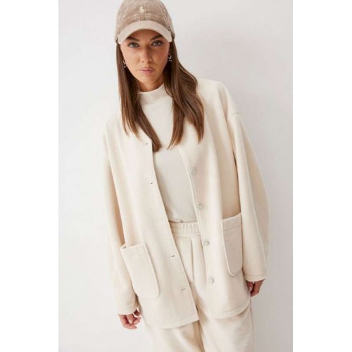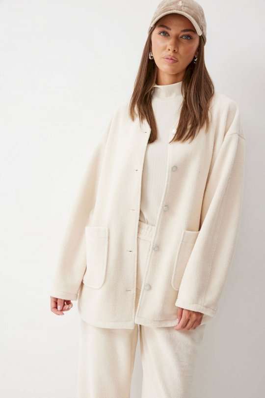 Жакет прямого силуэта с фигурным низом из трикотажного полотна. Горловина округлая, по центру застежка на кнопки. Рукав со спущенной линией плеча. По переду накладные карманы. Жакет без подкладки. Обращаем ваше внимание, что фурнитура может отличаться от фото. Подходит на рост 164-170 см. Длина жакета (44-48р - 75см)(50-54р - 78см)(56-60р - 80см). Длина рукава (44-48р - 74см)(50-54р - 76,5см)(56-60р - 79см).