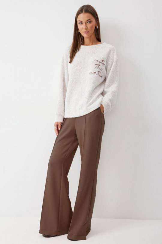 Джемпер прямого силуэта из комфортного трикотажного полотна. Горловина округлая. Рукав со спущенной линией плеча, по низу манжета. По низу джемпера в боковых швах разрезы. По переду дизайнерская вышивка. Обращаем ваше внимание, что фурнитура может отличаться от фото. Подходит на рост 164-170 см. Длина джемпера (44-48р - 58см)(50-54р - 61см)(56-60р - 64см). Длина рукава (44-48р - 67,5см)(50-54р - 69,5см)(56-60р - 71см).