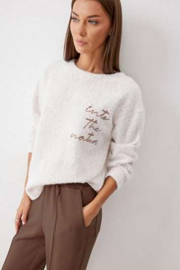 Джемпер прямого силуэта из комфортного трикотажного полотна. Горловина округлая. Рукав со спущенной линией плеча, по низу манжета. По низу джемпера в боковых швах разрезы. По переду дизайнерская вышивка. Обращаем ваше внимание, что фурнитура может отличаться от фото. Подходит на рост 164-170 см. Длина джемпера (44-48р - 58см)(50-54р - 61см)(56-60р - 64см). Длина рукава (44-48р - 67,5см)(50-54р - 69,5см)(56-60р - 71см).