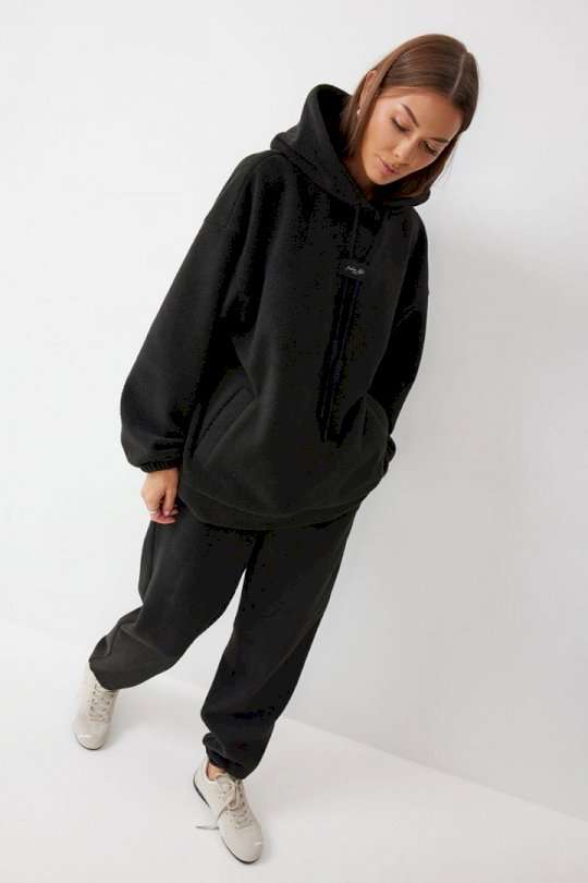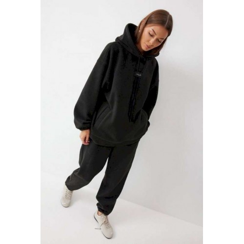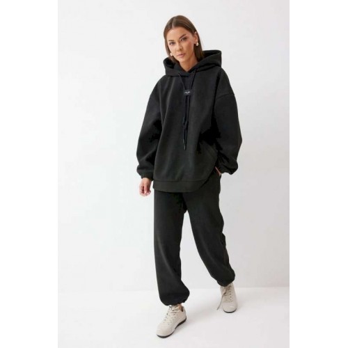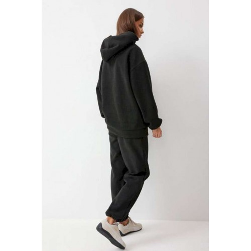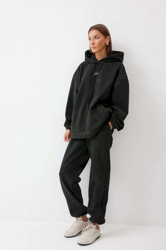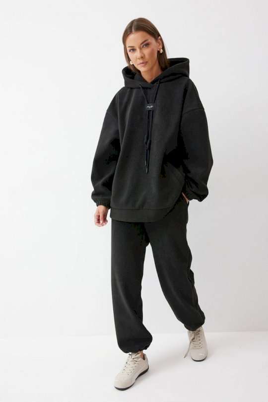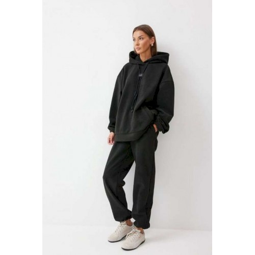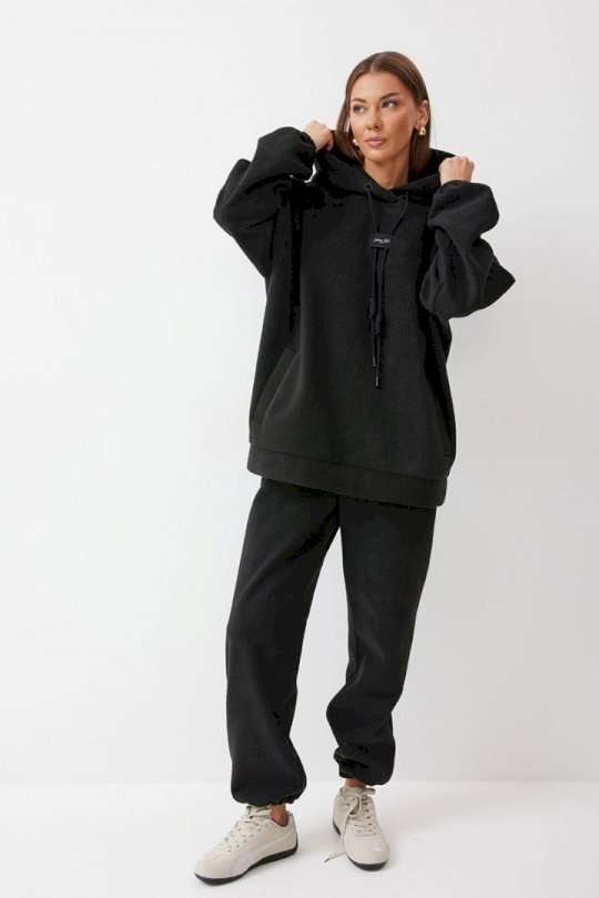 Костюм, состоящий из джемпера и брюк. Джемпер прямого силуэта из комфортного трикотажного полотна. Горловина обработана капюшоном. Рукав со спущенной линией плеча, по низу на резинке. По низу джемпера притачной пояс. По переду декоративная нашивка и шнур. Брюки прямого силуэта из комфортного трикотажного полотна. По верху брюк притачной пояс на резинке. На передних половинках брюк обработаны карманы. Ширина брюк по низу регулируется за счет эластичной тесьмы и фиксаторов. Обращаем ваше внимание, что фурнитура может отличаться от фото. Подходит на рост 164-170 см. Длина джемпера 70 см. Длина рукава от горловины (44-48р – 76см)(50-54р - 76,5см). Длина брюк (44-48р -100+4,5см)(50-54р - 101+4,5см).