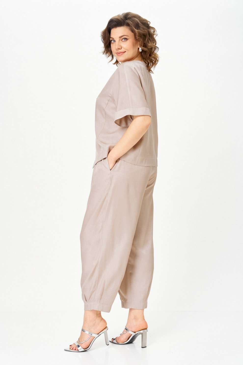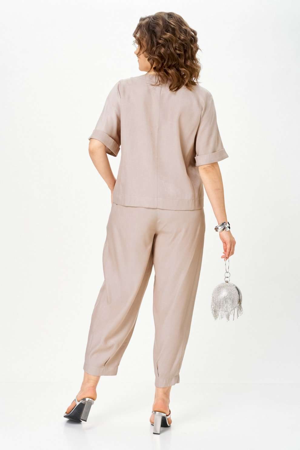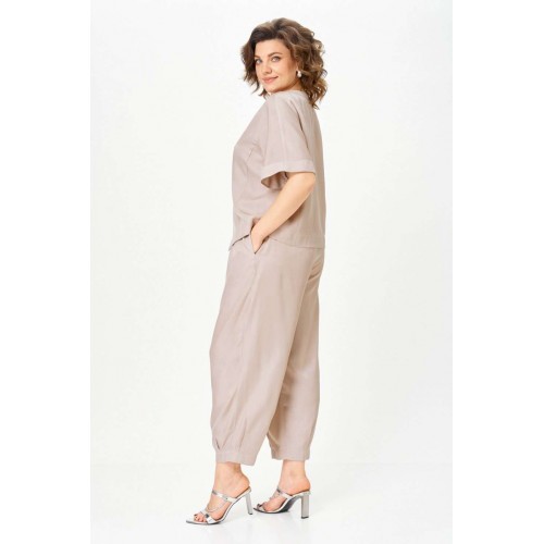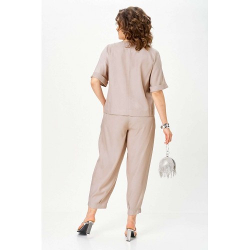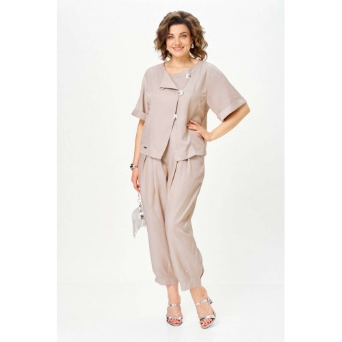 Костюм брючный 1337-3 дюна Michel Chic — это воплощение стиля и комфорта. Коллекция бренда Michel Chic предлагает стильный комплект из легкого и струящегося денима с мягкой текстурой. Свободный крой и эластичный пояс на брюках делают костюм удобным для повседневной носки и тёплого сезона. Верх с укороченным рукавом и акцентными пуговицами добавляет утонченности. Костюм в бежевых тонах, подходит для весенне-летнего сезона и идеален для прогулок и мероприятий. Длина жакета по спинке — 57 см, длина рукава — 33 см, длина брюк по шаговому шву — 65 см. Подходит на рост 170 см.